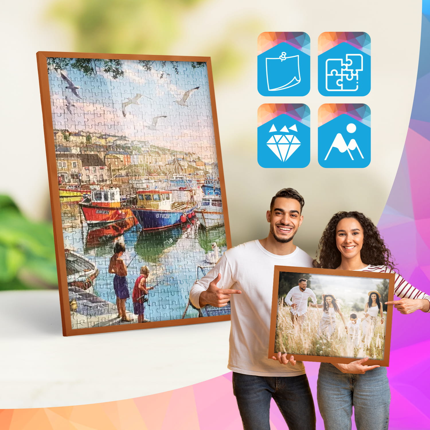 A wooden frame is an aesthetic and universal solution for framing photos, posters, graphics and decorative prints. The classic frame profile gives the frame an elegant look and clearly emphasises the presented motif without dominating the content. The frame is made of carefully processed natural wood, preserving the visible structure of the material, which gives the whole a natural and timeless character. The front of the frame is made of lightweight and damage-resistant plexiglass, which is a safer alternative to traditional glass and ensures good visibility of the framed work. The stable HDF board and solid metal hangers allow for quick installation and easy replacement of the contents without the use of tools.