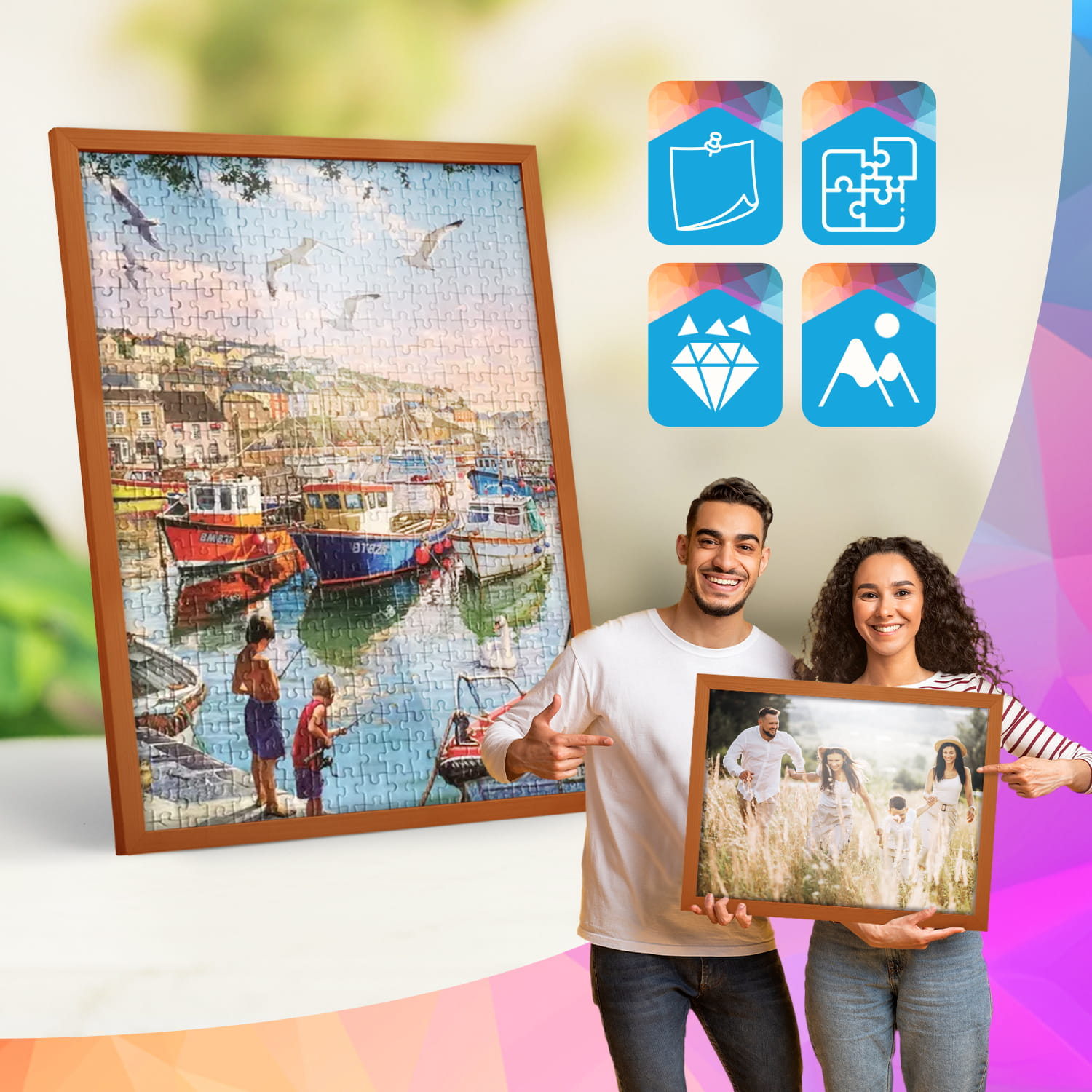A wooden frame is an aesthetic and universal solution for framing photos, posters, graphics and decorative prints. The classic frame profile gives the frame an elegant look and clearly emphasises the presented motif without dominating the content. The frame is made of carefully processed natural wood, preserving the visible structure of the material, which gives the whole a natural and timeless character. The front of the frame is made of lightweight and damage-resistant plexiglass, which is a safer alternative to traditional glass and ensures good visibility of the framed work. The stable HDF board and solid metal hangers allow for quick installation and easy replacement of the contents without the use of tools.
