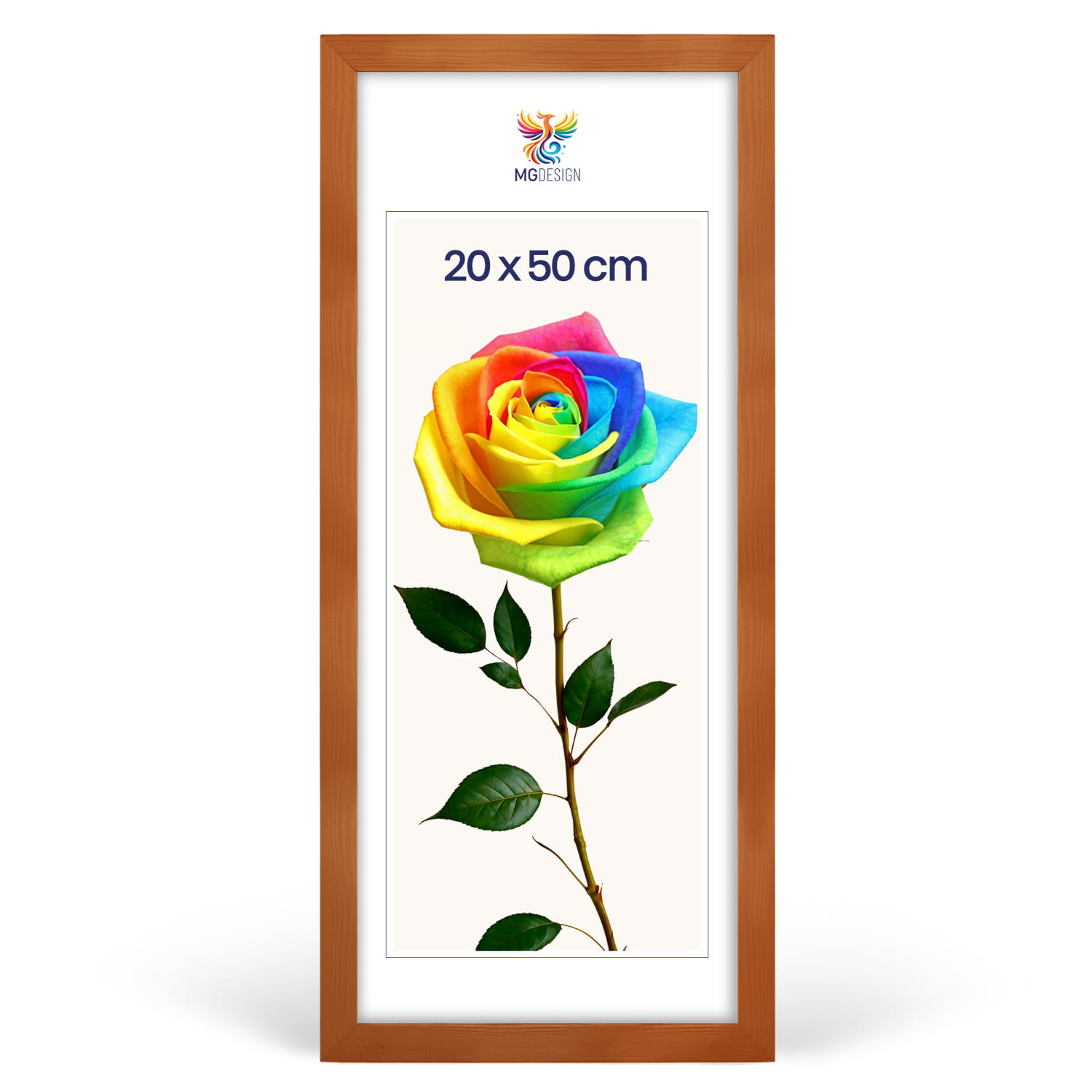Varnished photo frame 8 x 20 in (20 x 50 cm), made of natural wood