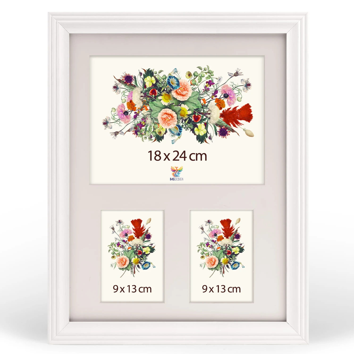 White Milled Multi-Frame for 3 Photos: 2x 4 x 5 in (9 x 13 cm) + 7 x 9 in (18 x 24 cm)