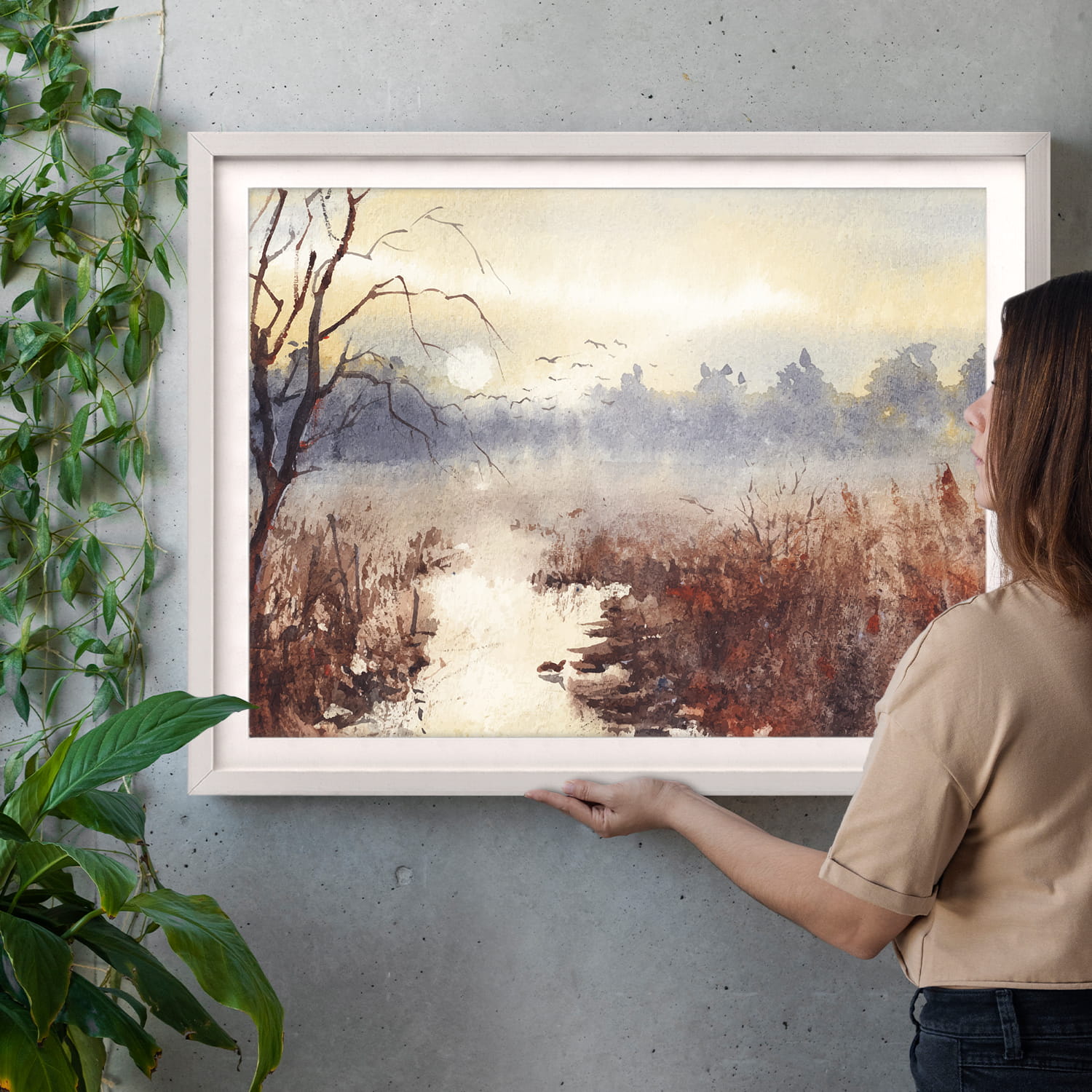The frame is made of natural wood, carefully processed to preserve the visible structure of the material, which gives the whole a natural and timeless character. The front of the frame is made of lightweight and damage-resistant plexiglass, which ensures good visibility of the framed work and greater safety compared to traditional glass.