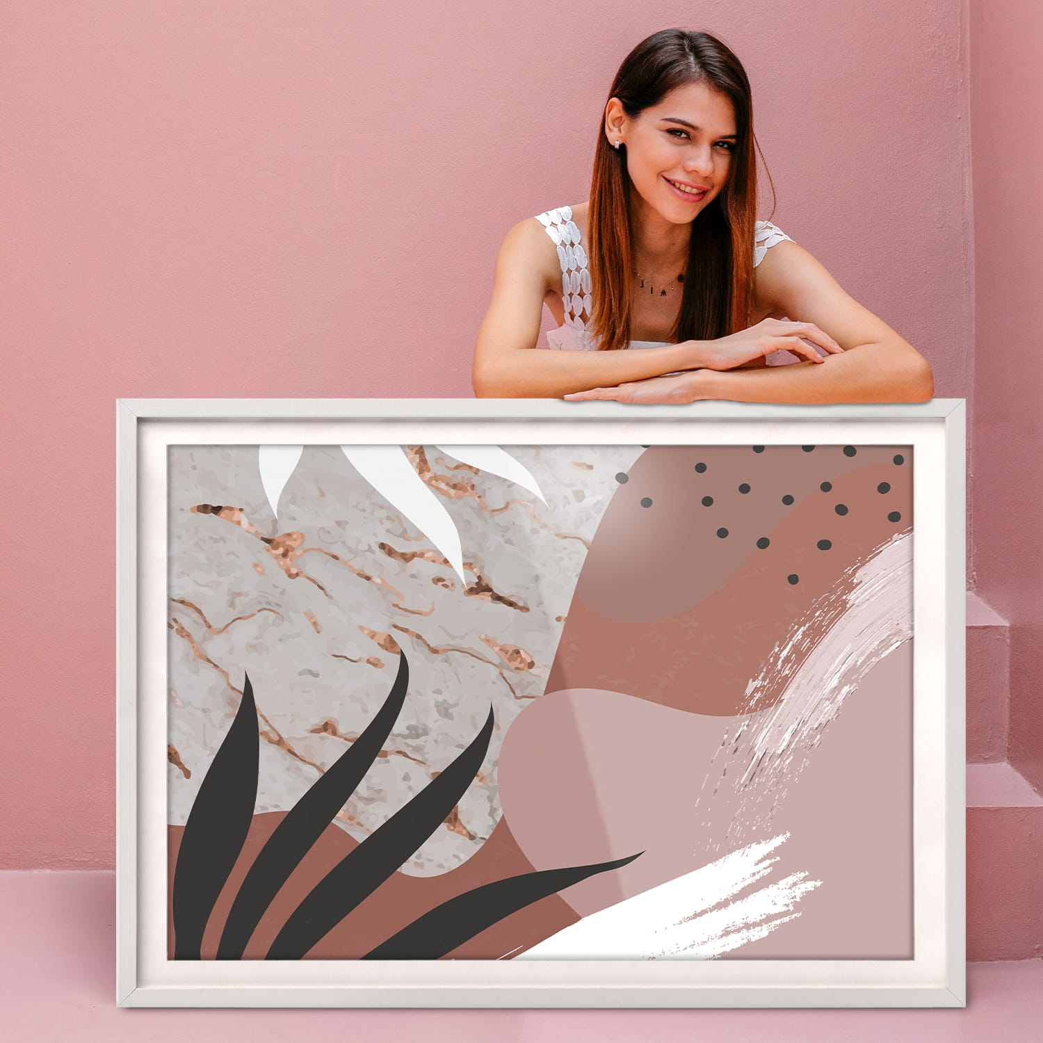 The frame can be placed on furniture or hung on the wall. Thanks to its high profile, it achieves a modern effect of distancing the image from the surface, which looks good in both home and commercial interiors.