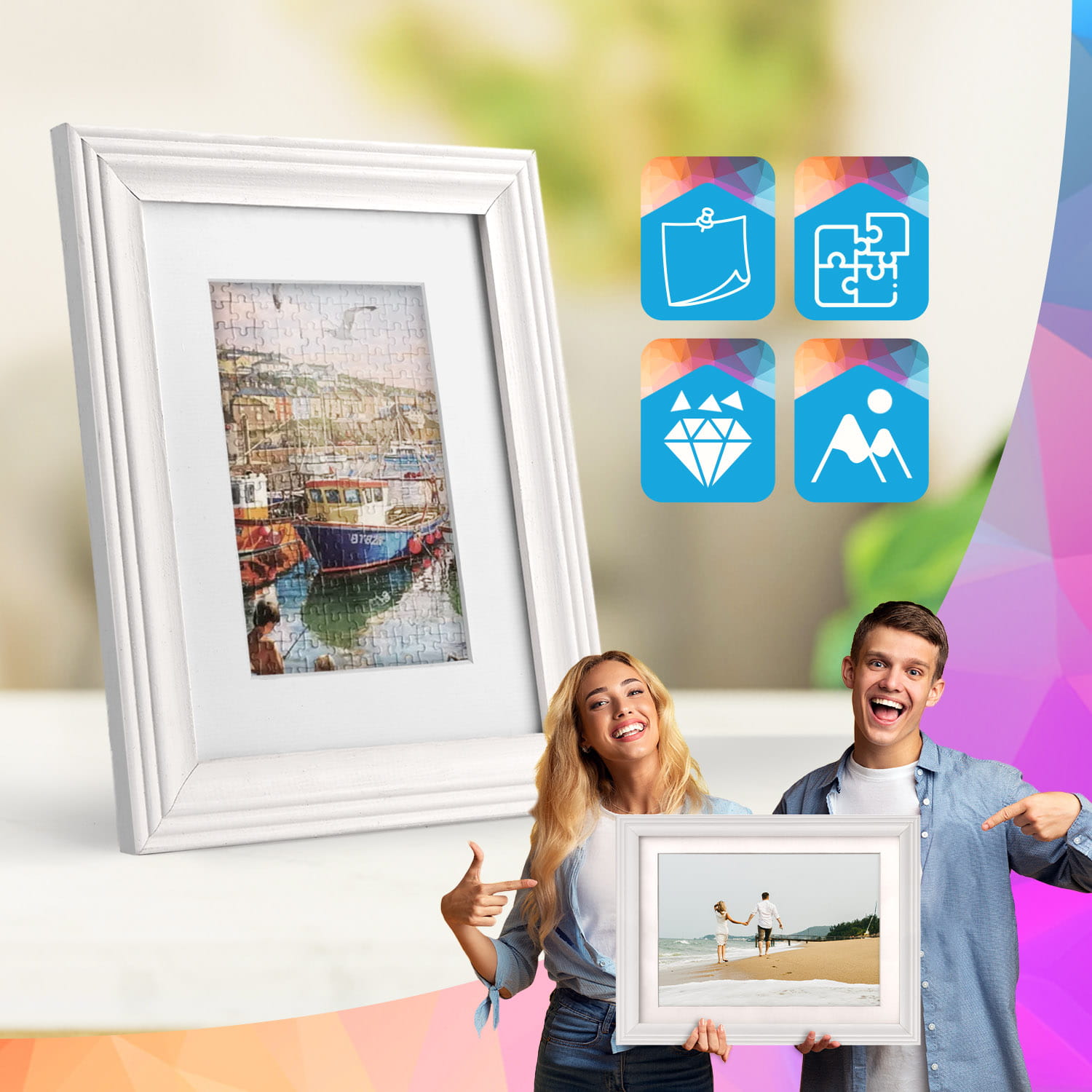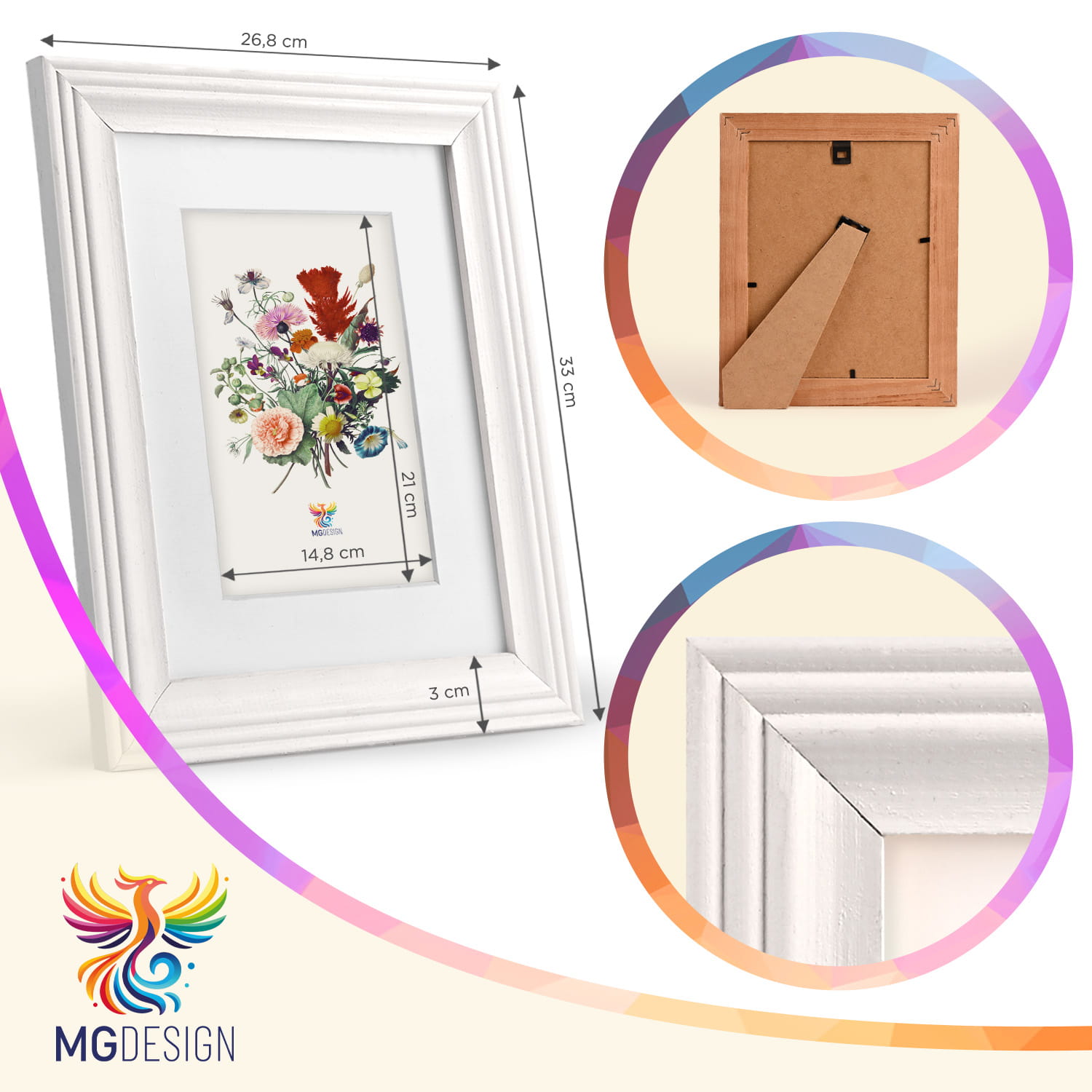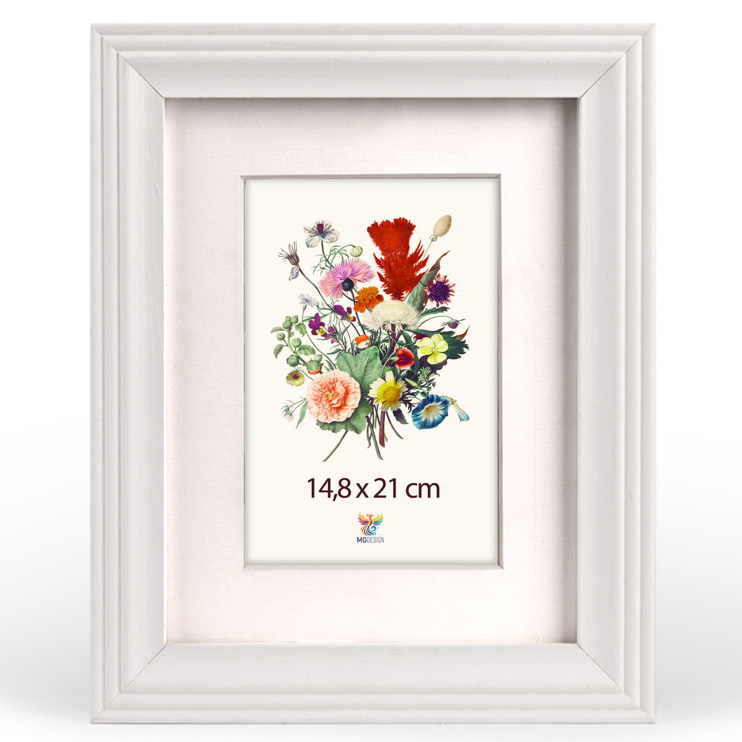 White milled photo frame A5 6 x 8 in (15 x 21 cm), made of wood