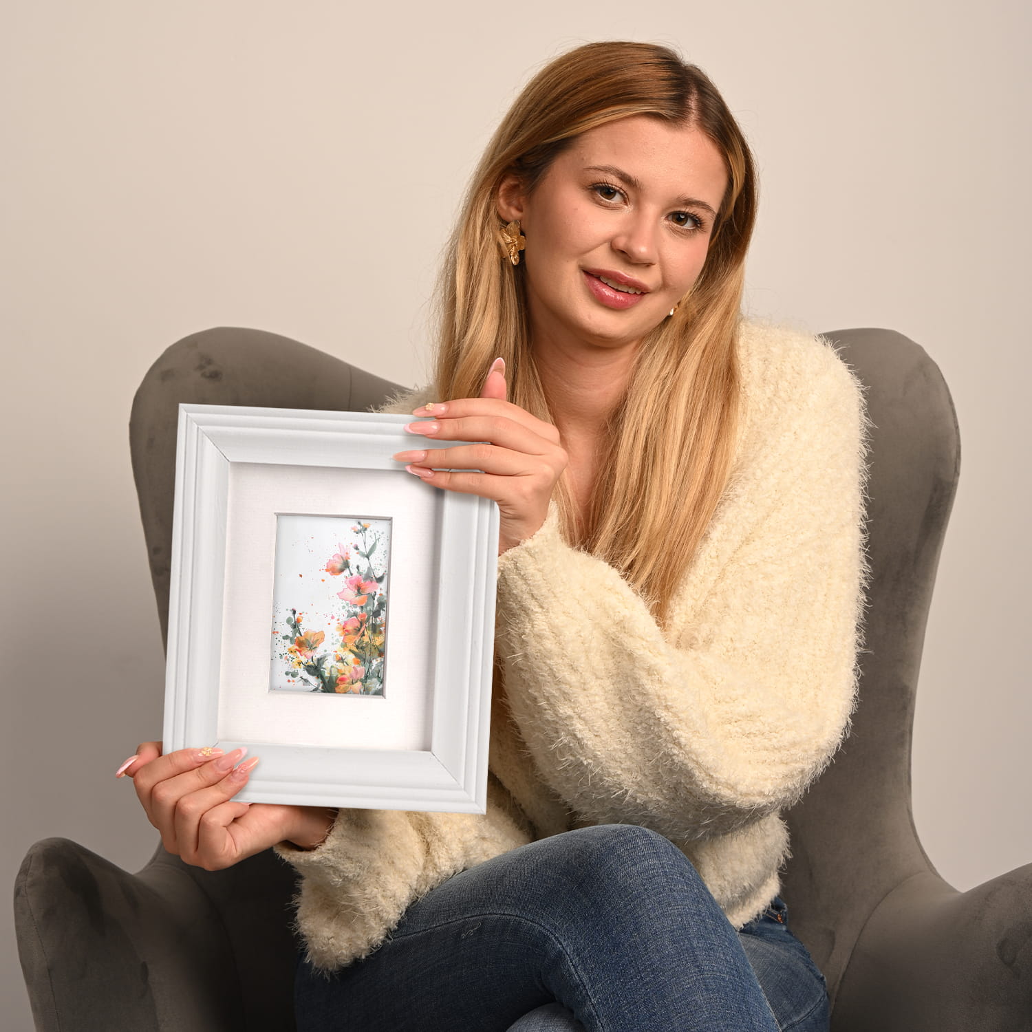 The frame is made of natural wood, carefully processed to preserve the visible structure of the material, which gives the whole a natural and timeless character. The front of the frame is made of lightweight and damage-resistant plexiglass, ensuring safety and good visibility of the framed work compared to traditional glass.