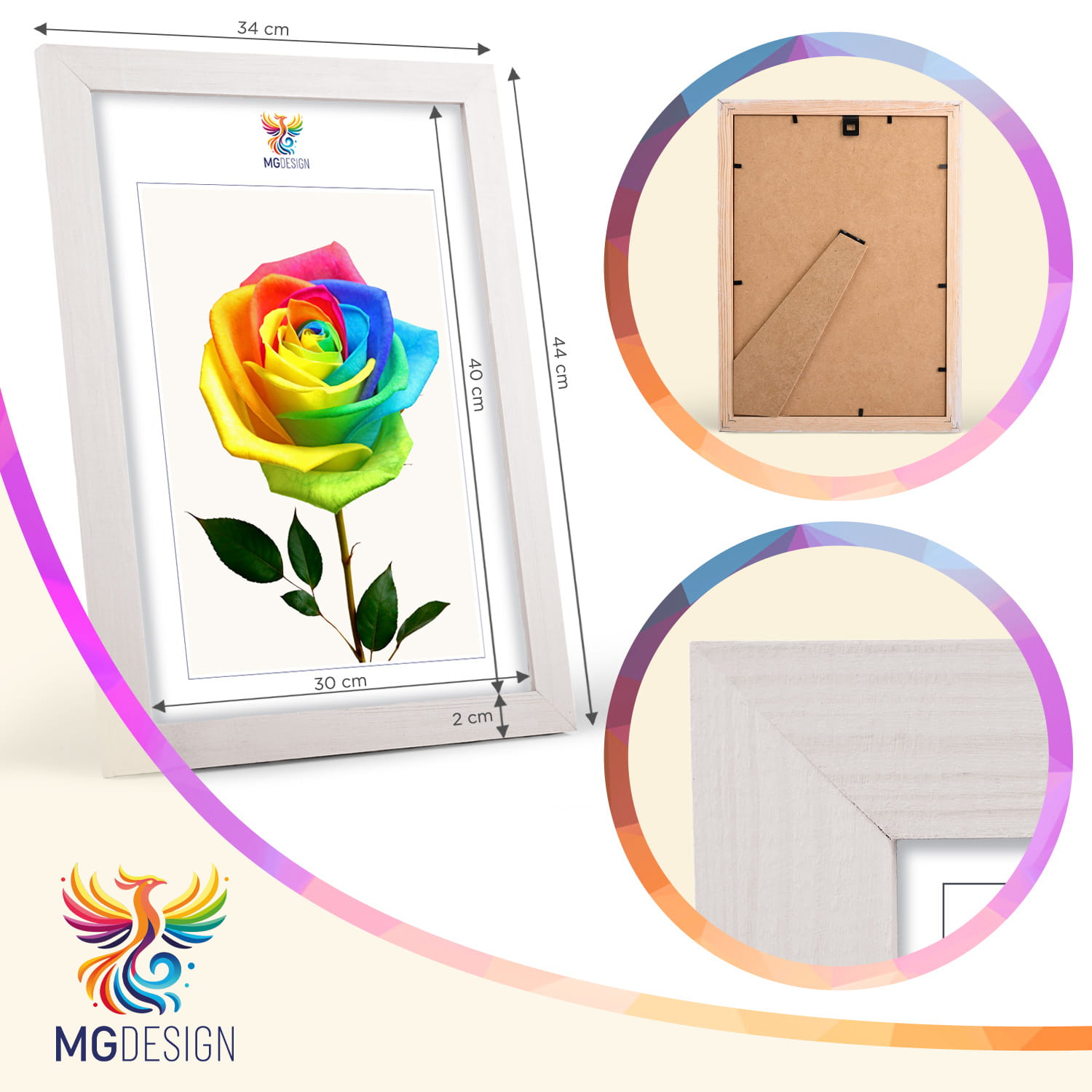 A wooden frame is an aesthetic and universal solution for framing photos, posters, graphics and decorative prints. The classic frame profile gives the frame an elegant look and clearly emphasises the presented motif without dominating the content. The frame is made of carefully processed natural wood, preserving the visible structure of the material, which gives the whole a natural and timeless character. The front of the frame is made of lightweight and damage-resistant plexiglass, which is a safer alternative to traditional glass and ensures good visibility of the framed work. The stable HDF board and solid metal hangers allow for quick installation and easy replacement of the contents without the use of tools.