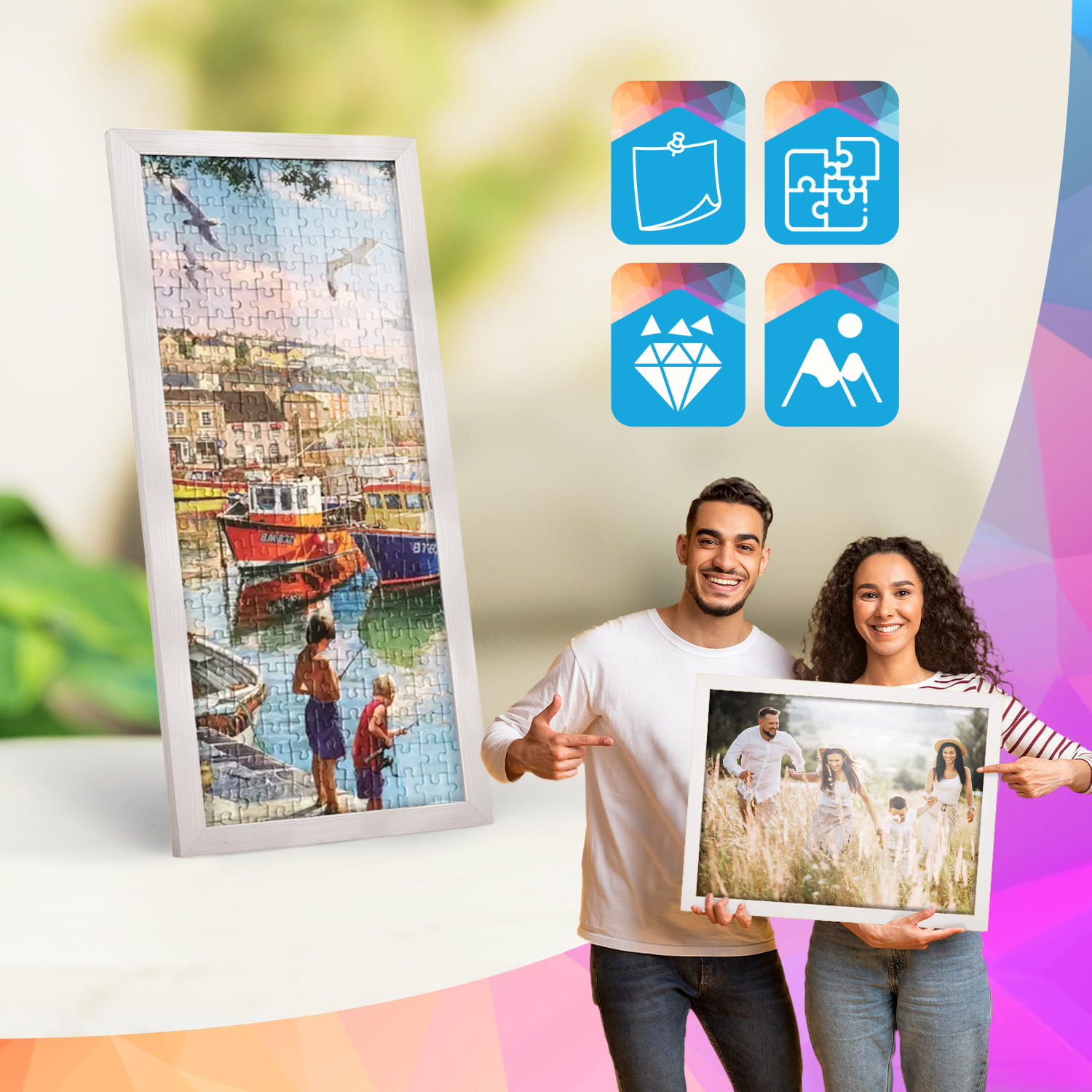 A wooden frame is an aesthetic and universal solution for framing photos, posters, graphics and decorative prints. The classic frame profile gives the frame an elegant look and clearly emphasises the presented motif without dominating the content. The frame is made of carefully processed natural wood, preserving the visible structure of the material, which gives the whole a natural and timeless character. The front of the frame is made of lightweight and damage-resistant plexiglass, which is a safer alternative to traditional glass and ensures good visibility of the framed work. The stable HDF board and solid metal hangers allow for quick installation and easy replacement of the contents without the use of tools.