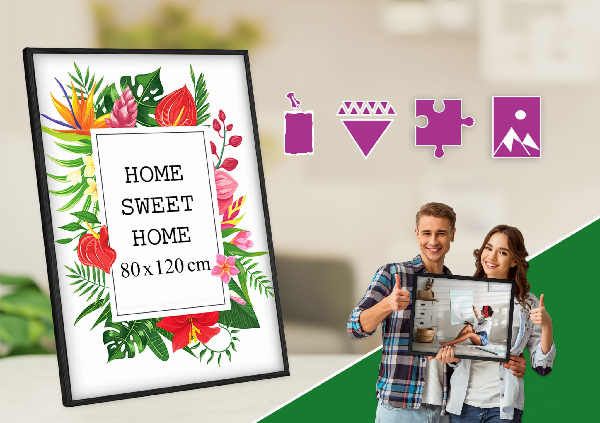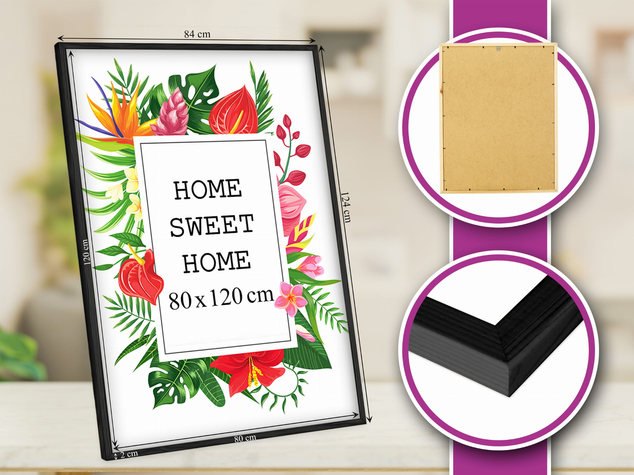 Solid frame and looks great on the wall. I chose the black color and used it for a polaroid in size 80x120 cm. Looks great in the kids room. it works well both standing and hanging, and it's lightweight but feels solid. The pop of color makes the wall more fun. Everything arrived as described. Glad I chose this color.