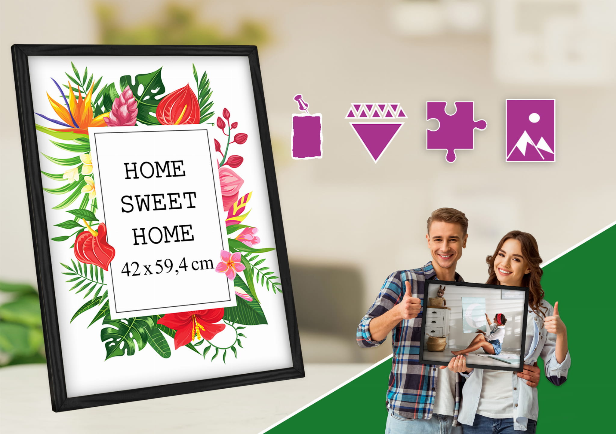 Solid frame and looks great on the wall. I chose the blue color and used it for a photo in size 50x70 cm. Looks great on a bedside table. it works well both standing and hanging, and the frame sits straight and looks tidy. It matches my decor perfectly. Packaging was secure. Will order more for a full set.