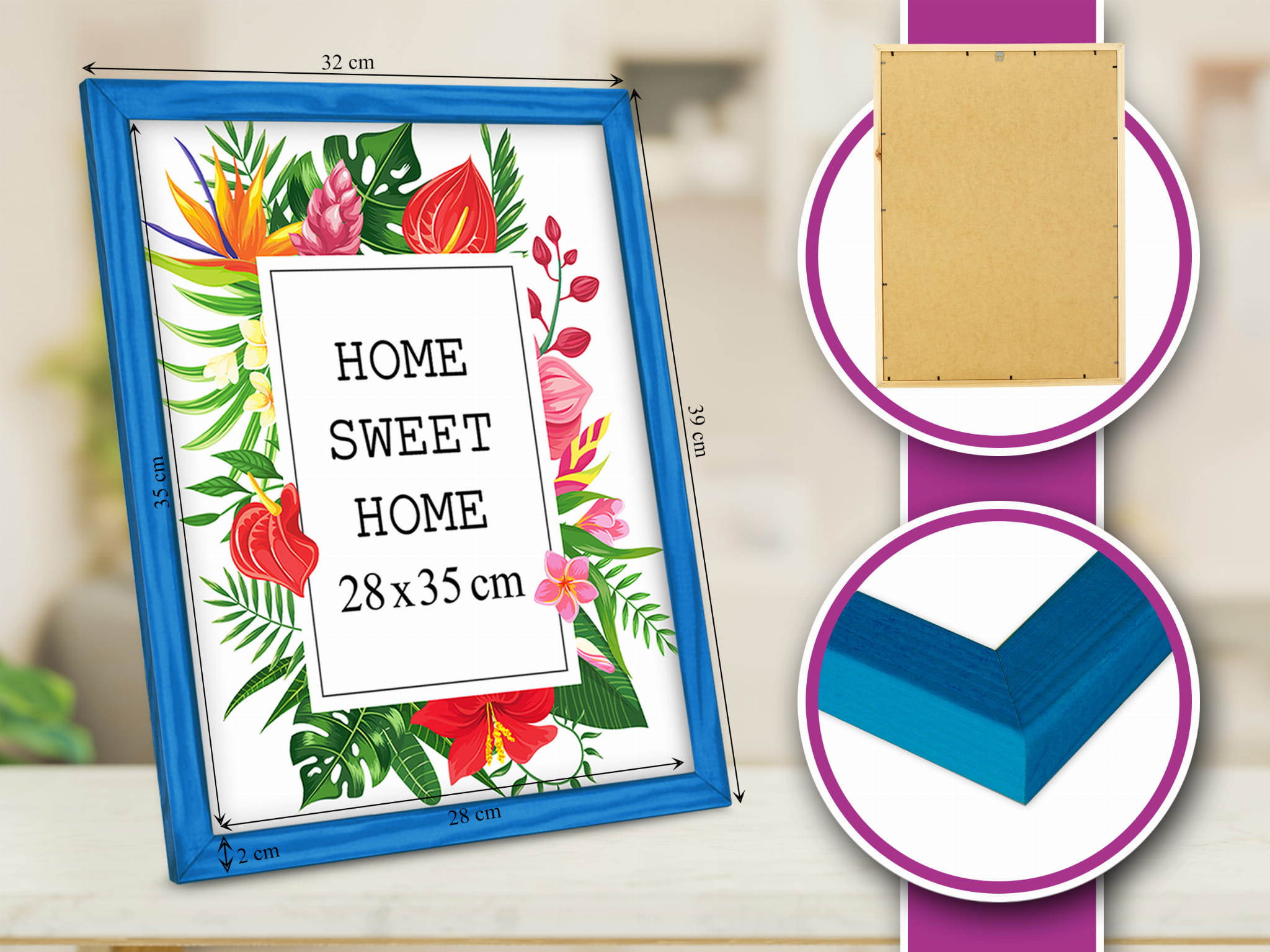 Nice color and good build. I chose the blue color and used it for a art print in size 50x70 cm. Looks great in the kids room. the cover is clear and shows the photo nicely, and the frame sits straight and looks tidy. Great for a modern, minimal look. Good value for money. Overall, a great purchase.