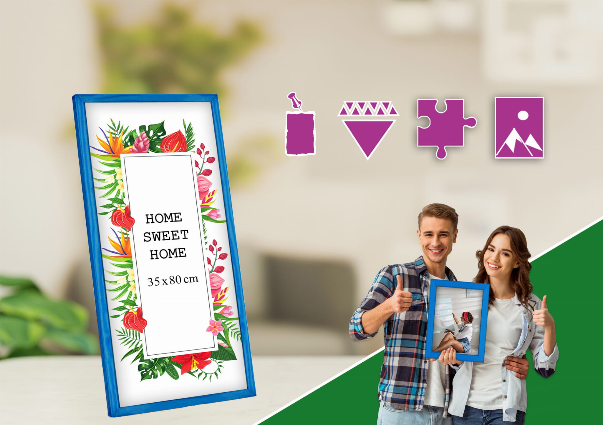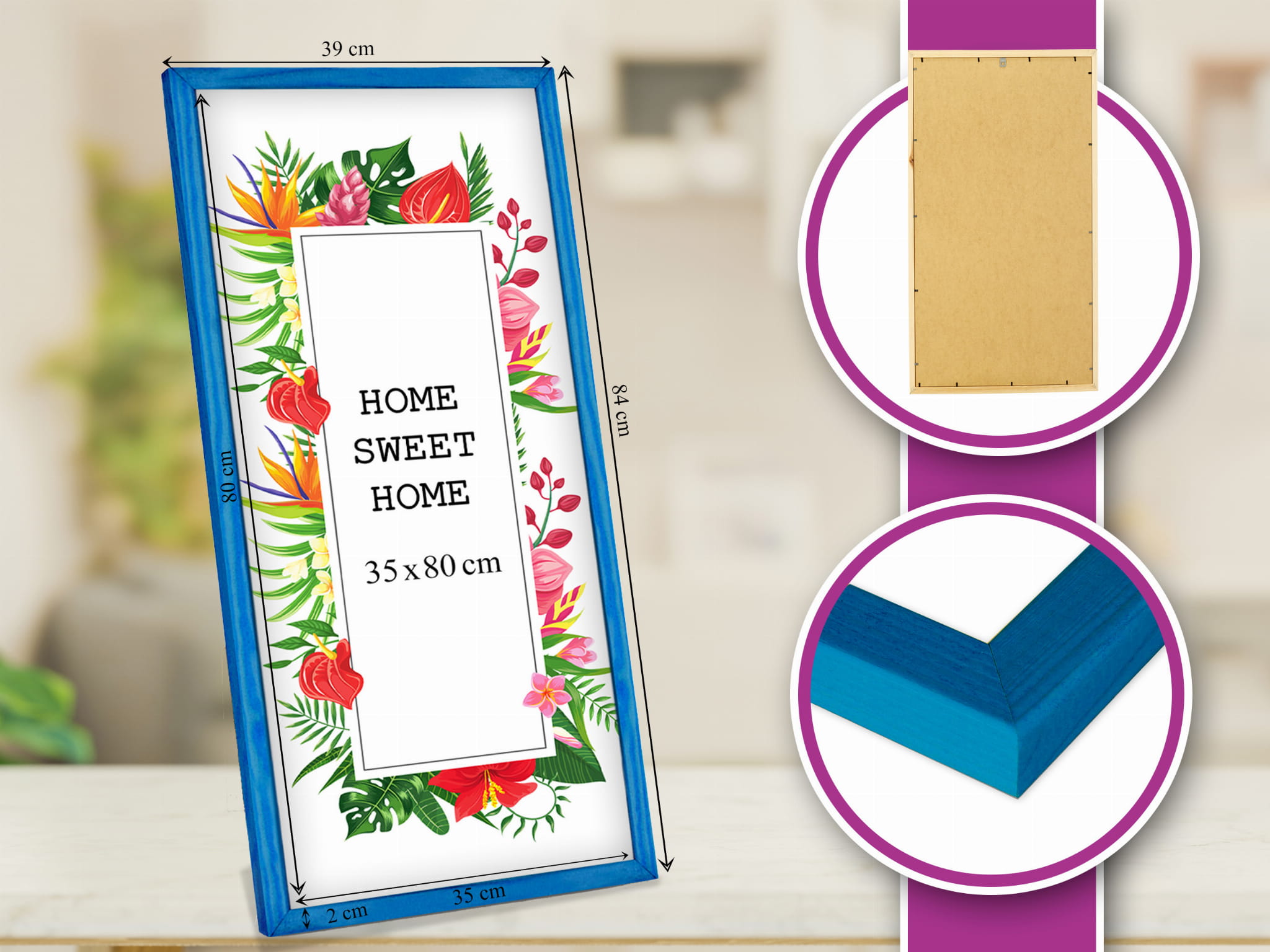 Wooden Blue Photo Frame 14 x 32 in (35 x 80 cm)