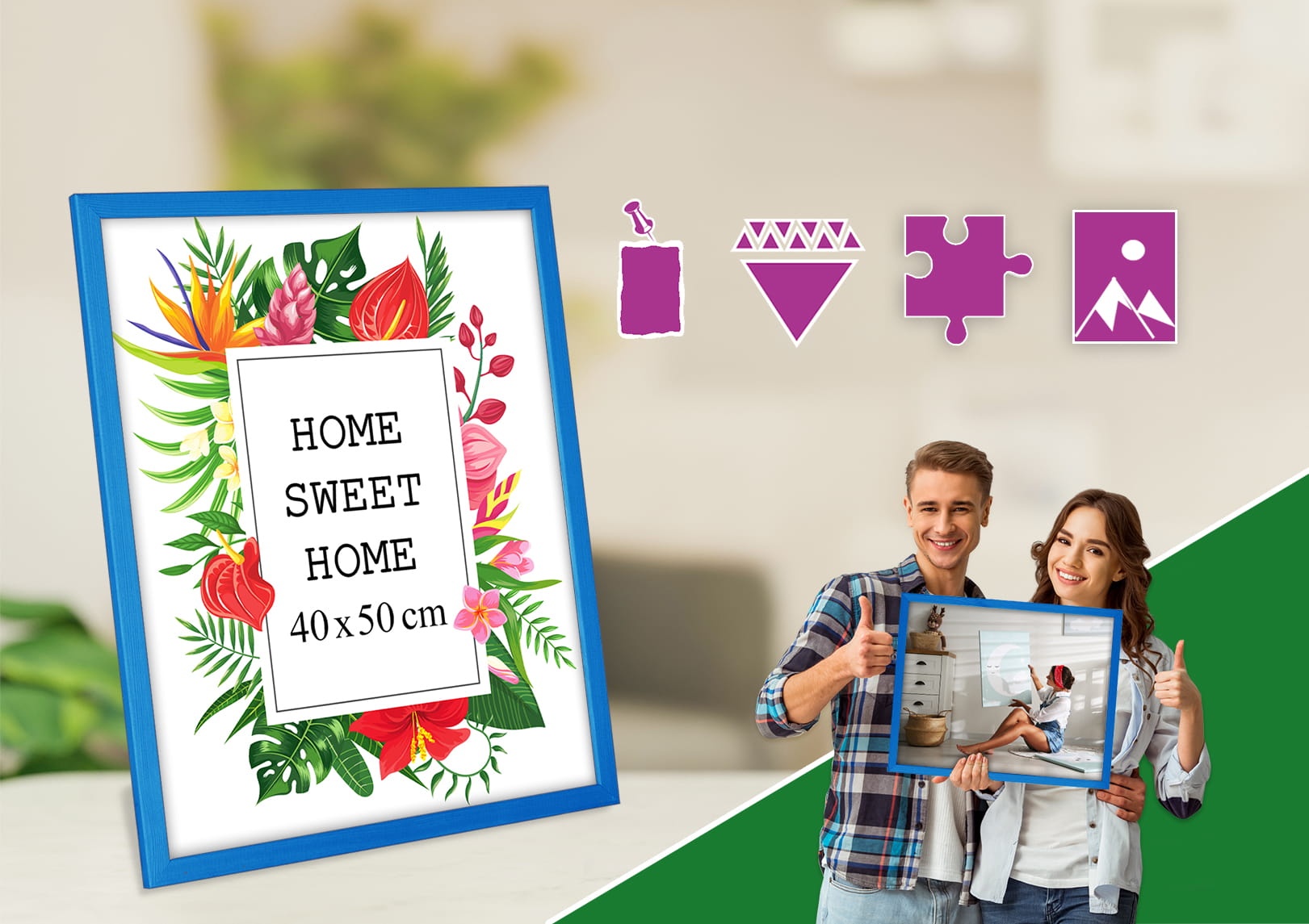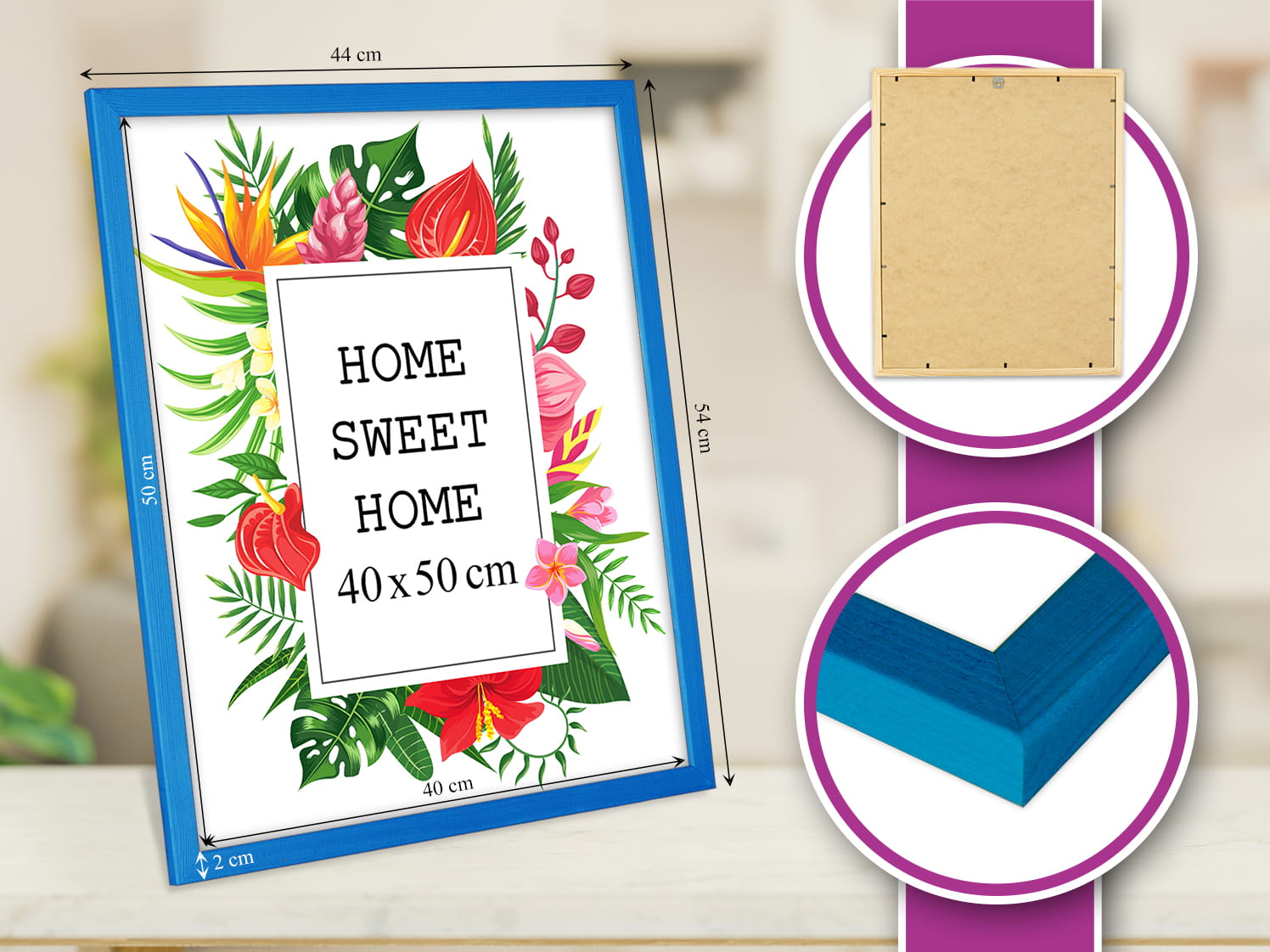 Beautiful frame for prints and photos. I chose the blue color and used it for a photo in size 40x50 cm. Looks great on a sideboard. the color looks true to the photos, and the profile is slim and modern. It matches my decor perfectly. Good value for money. Glad I chose this color.