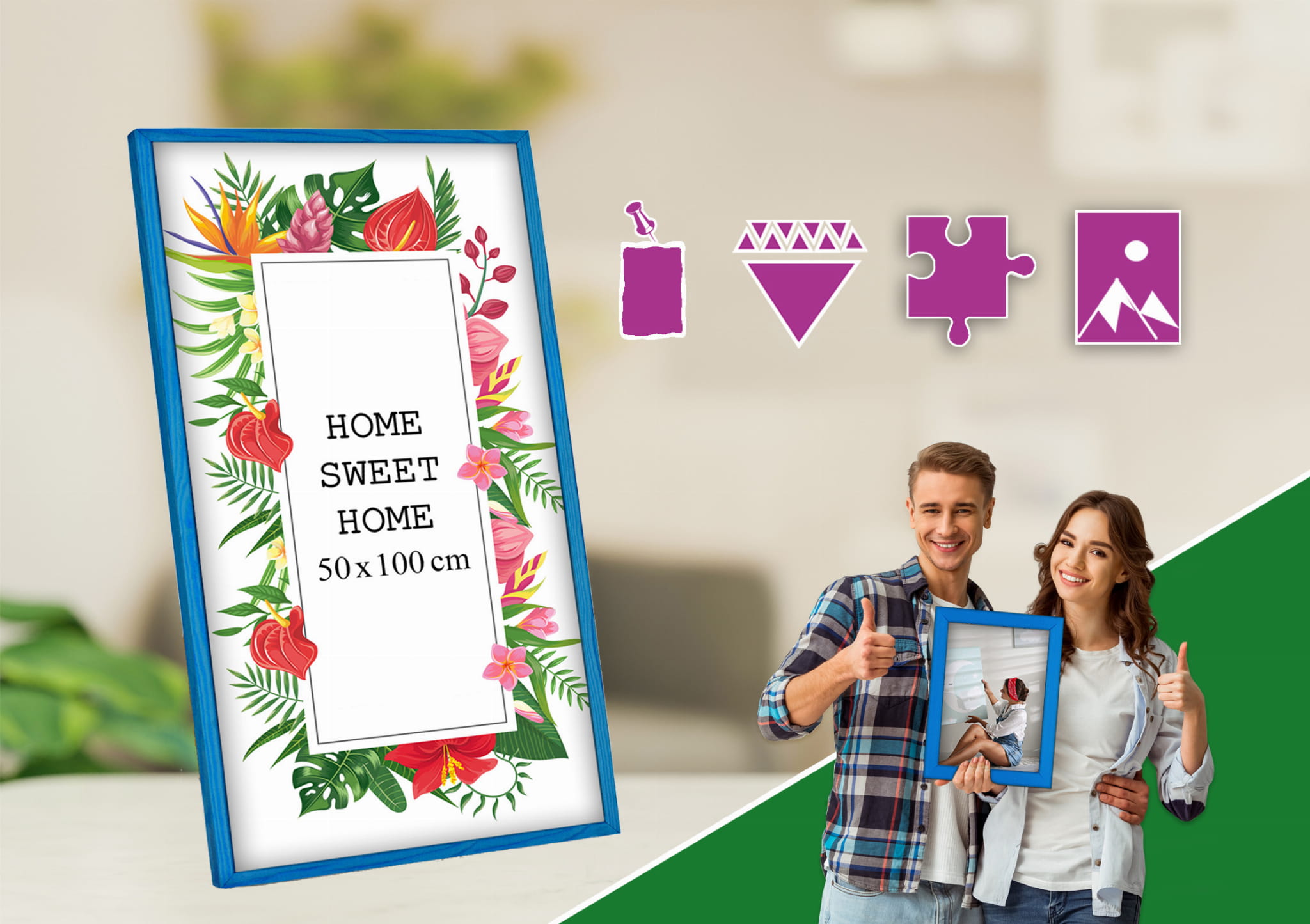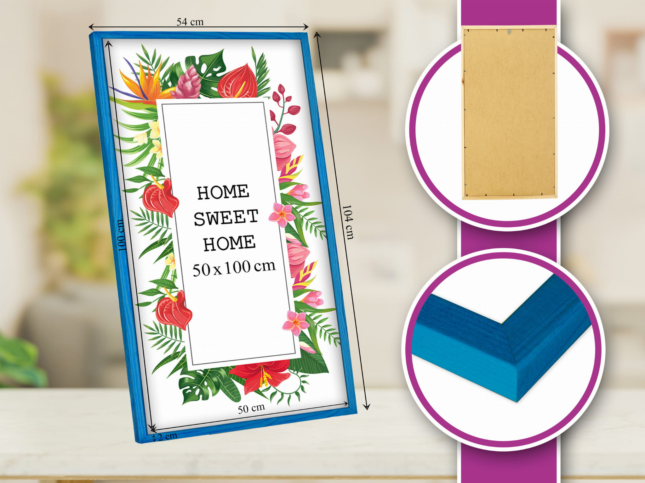 Wooden Blue Photo Frame 20 x 40 in (50 x 100 cm)