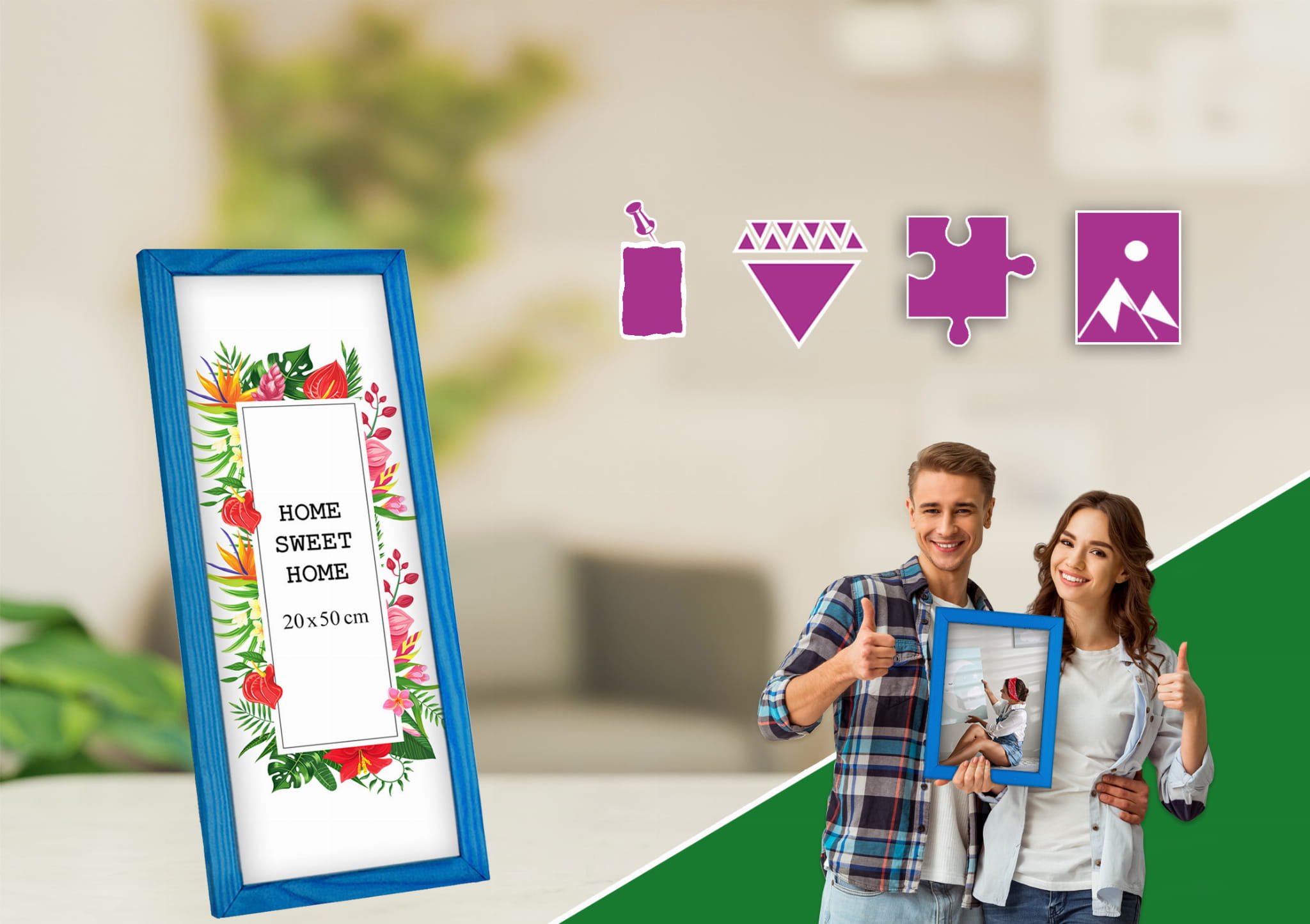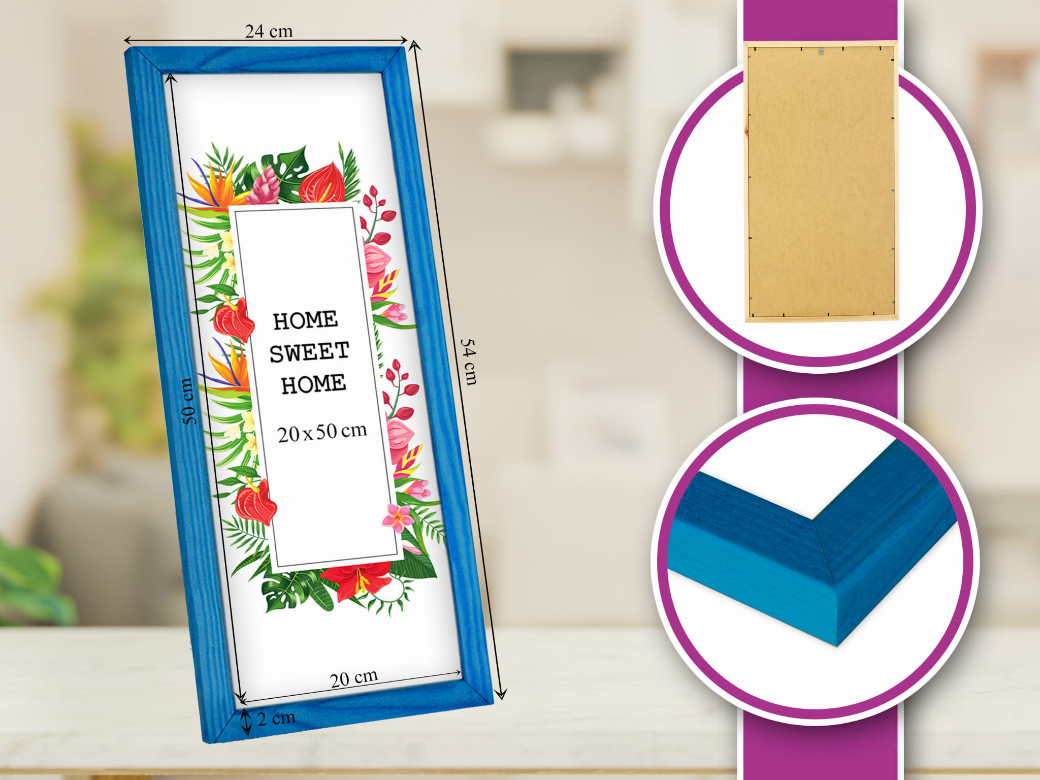 Wooden Blue Photo Frame 8 x 20 in (20 x 50 cm)
