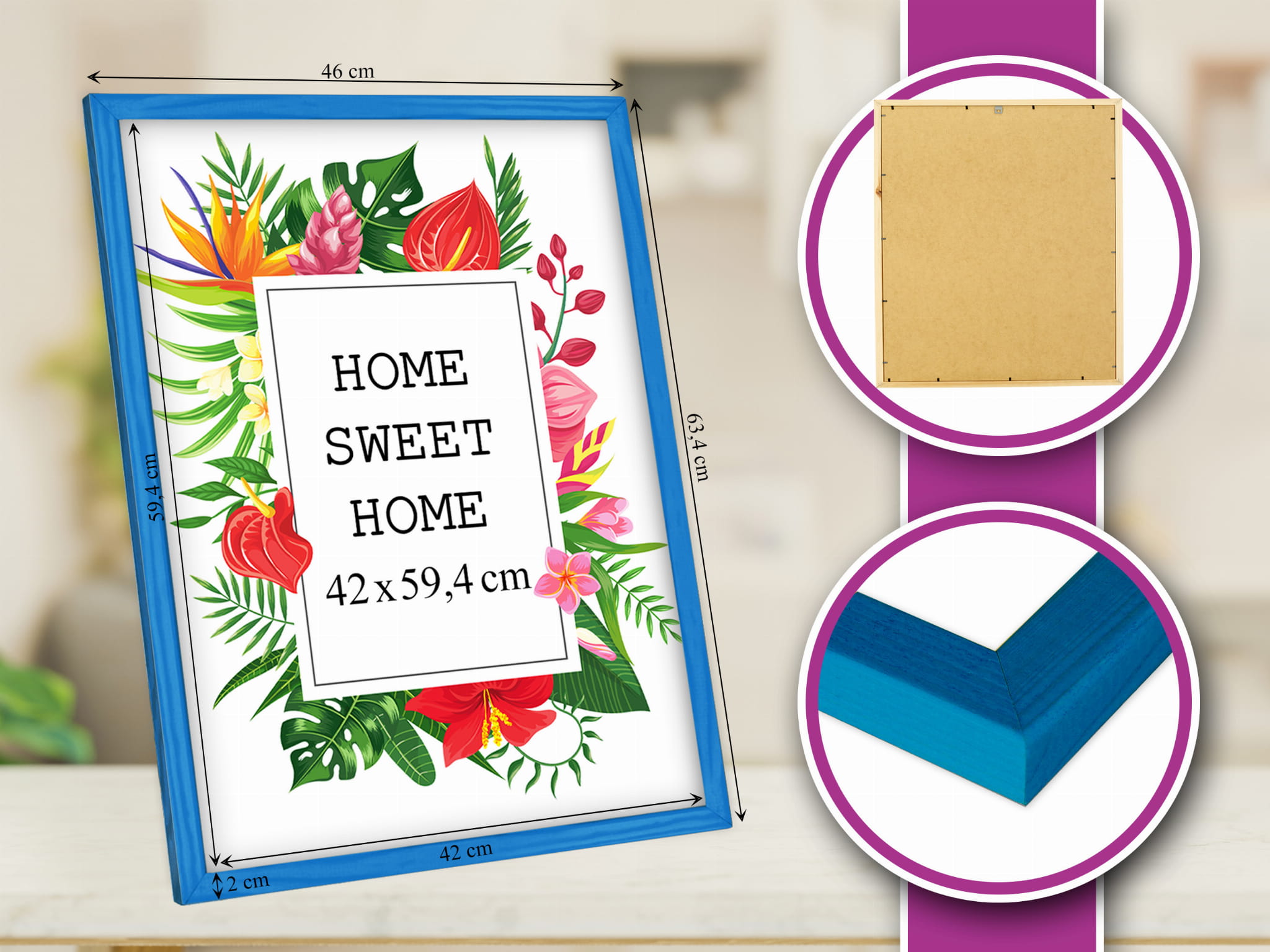 Wooden Blue Photo Frame A2 17 x 23 in (42 x 59,4 cm)