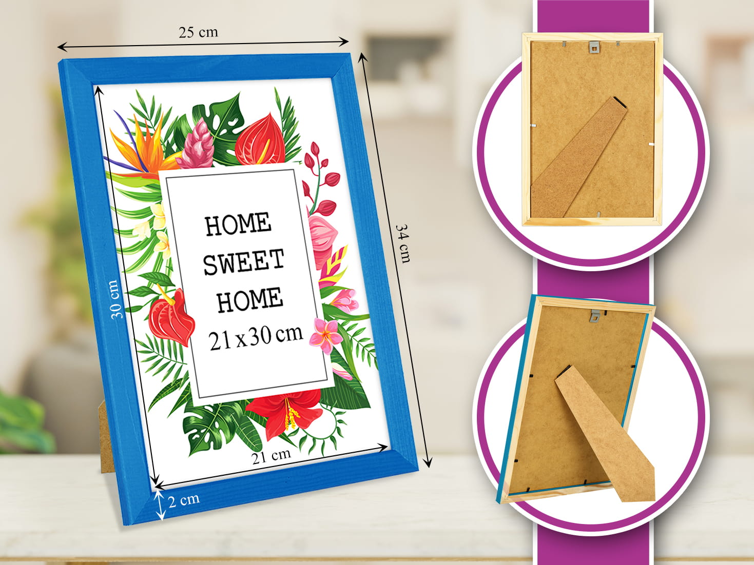 Perfect for gifting with a photo inside. I chose the blue color and used it for a photo in size 21x30 cm. Looks great in the home office. it feels sturdy and not flimsy, and the stand is stable on a shelf. Great for a modern, minimal look. Looks great right out of the box. Note: I'd love more size options. Would purchase again in another color.
