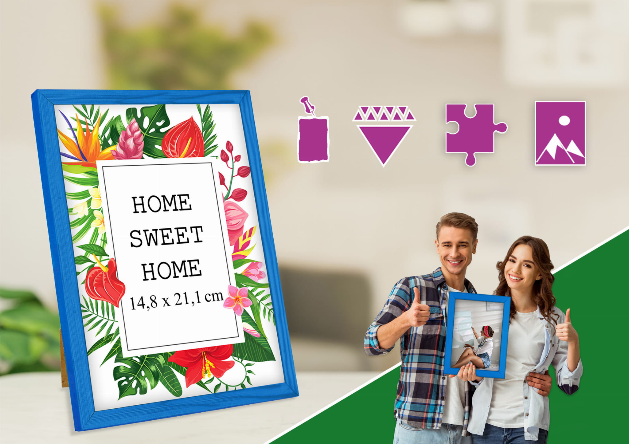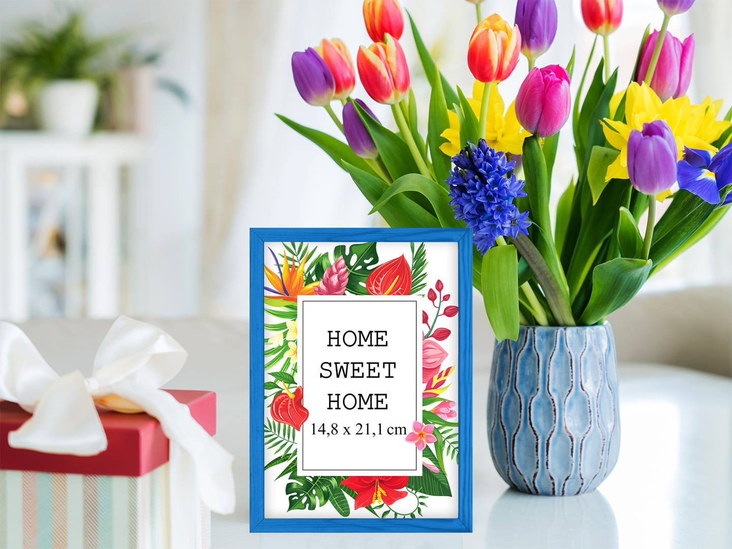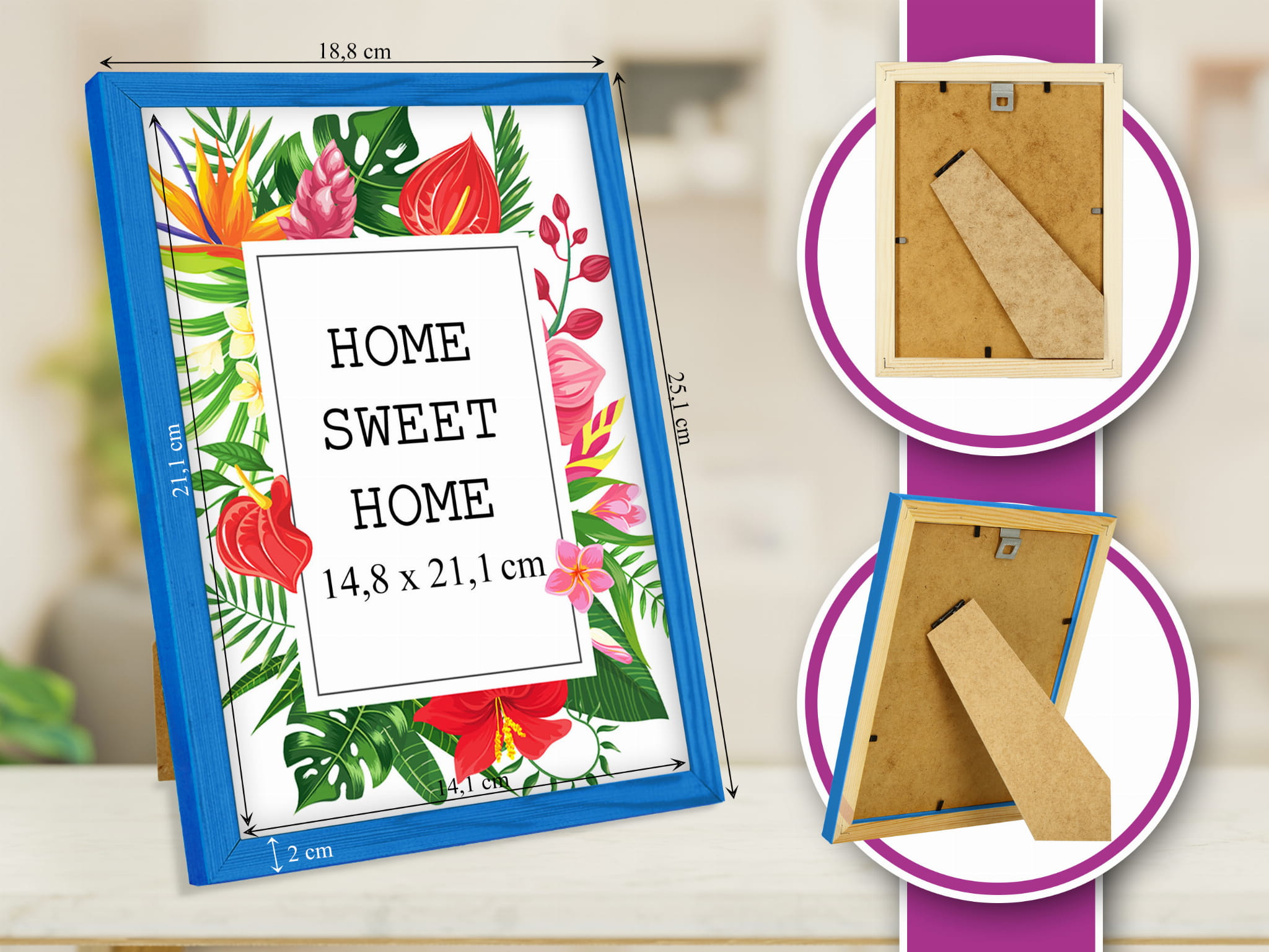 Wooden Blue Photo Frame A5 6 x 8 in (14,8 x 21 cm)