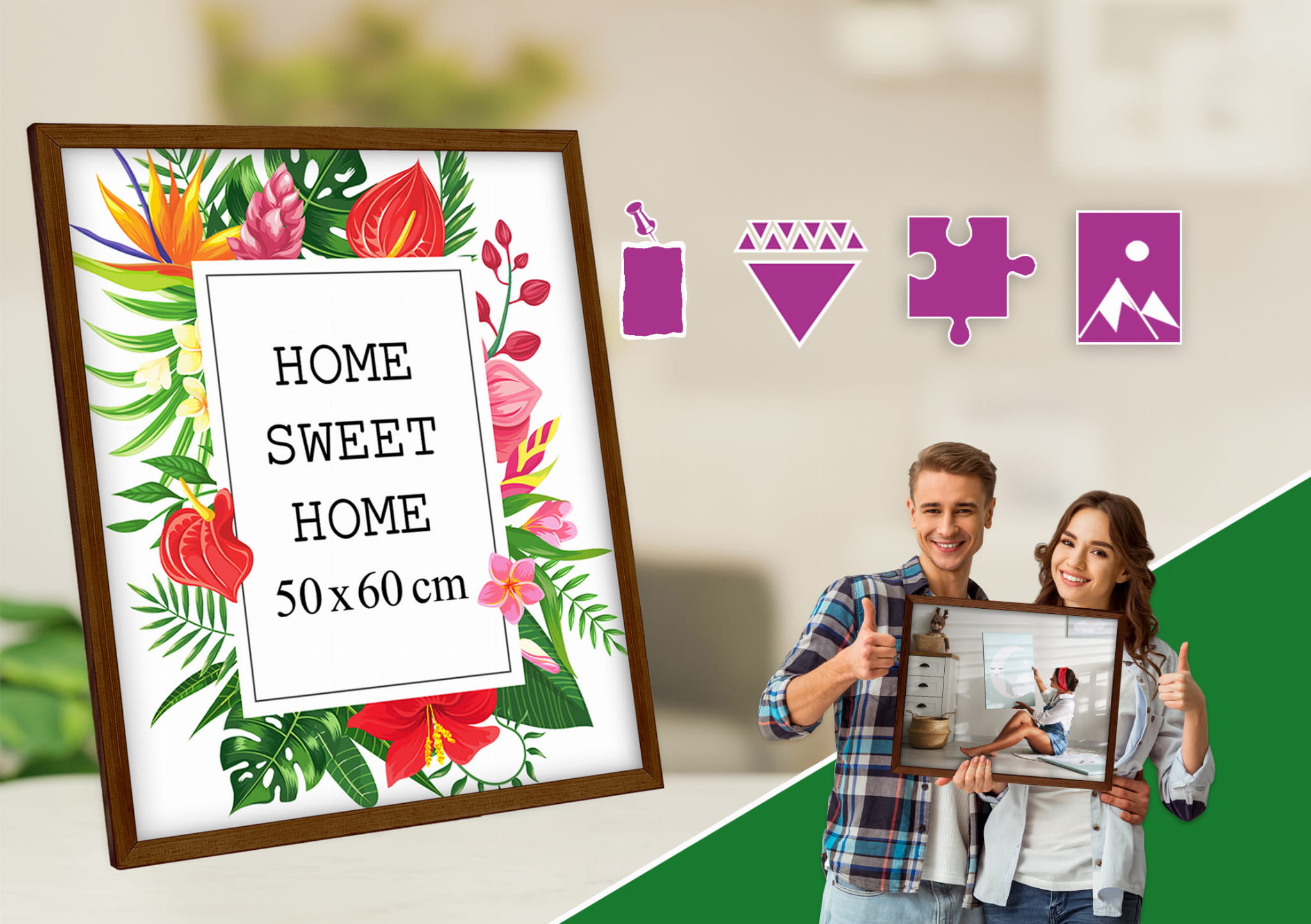 Really happy with this photo frame. I chose the brown color and used it for a portrait photo in size 50x60 cm. Looks great in the hallway. it holds the print flat and neat, and the profile is slim and modern. Pairs well with other frames in the set. Happy with the quality for the price. Note: If you'e hanging it, measure and level first for a perfect line. Overall, a great purchase.