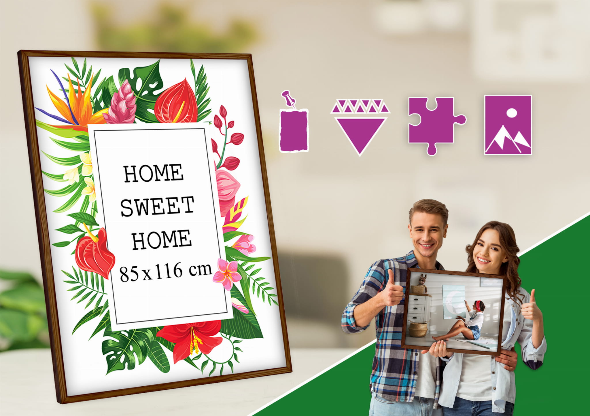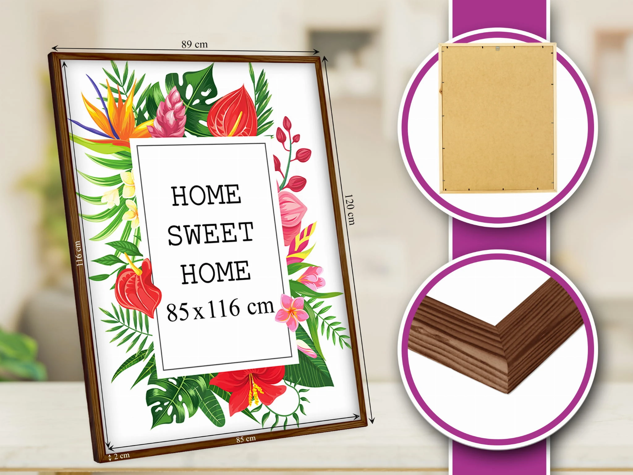 Beautiful frame for prints and photos. I chose the brown color and used it for a photo in size 85x116 cm. Looks great in the hallway. it looks more expensive than it is, and it works well both standing and hanging. Works nicely with neutral furniture. Packaging was secure. Exactly what I hoped for.