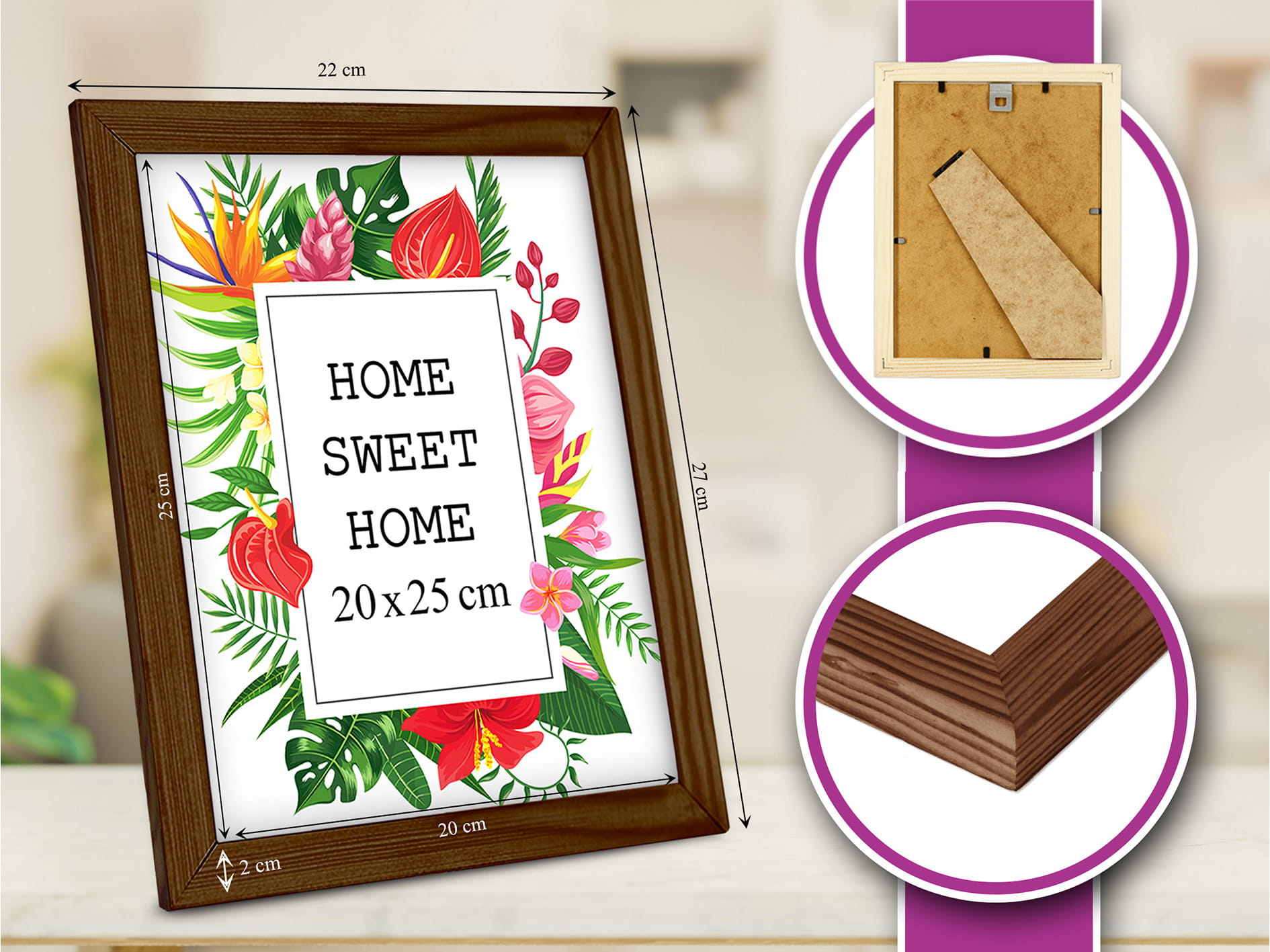 Does the job and looks stylish. I chose the natural wood color and used it for a photo in size 20x25 cm. Looks great in the living room. it holds the print flat and neat, and it holds the print flat and neat. The natural wood tone looks warm and cozy. Everything arrived as described. Exactly what I hoped for.