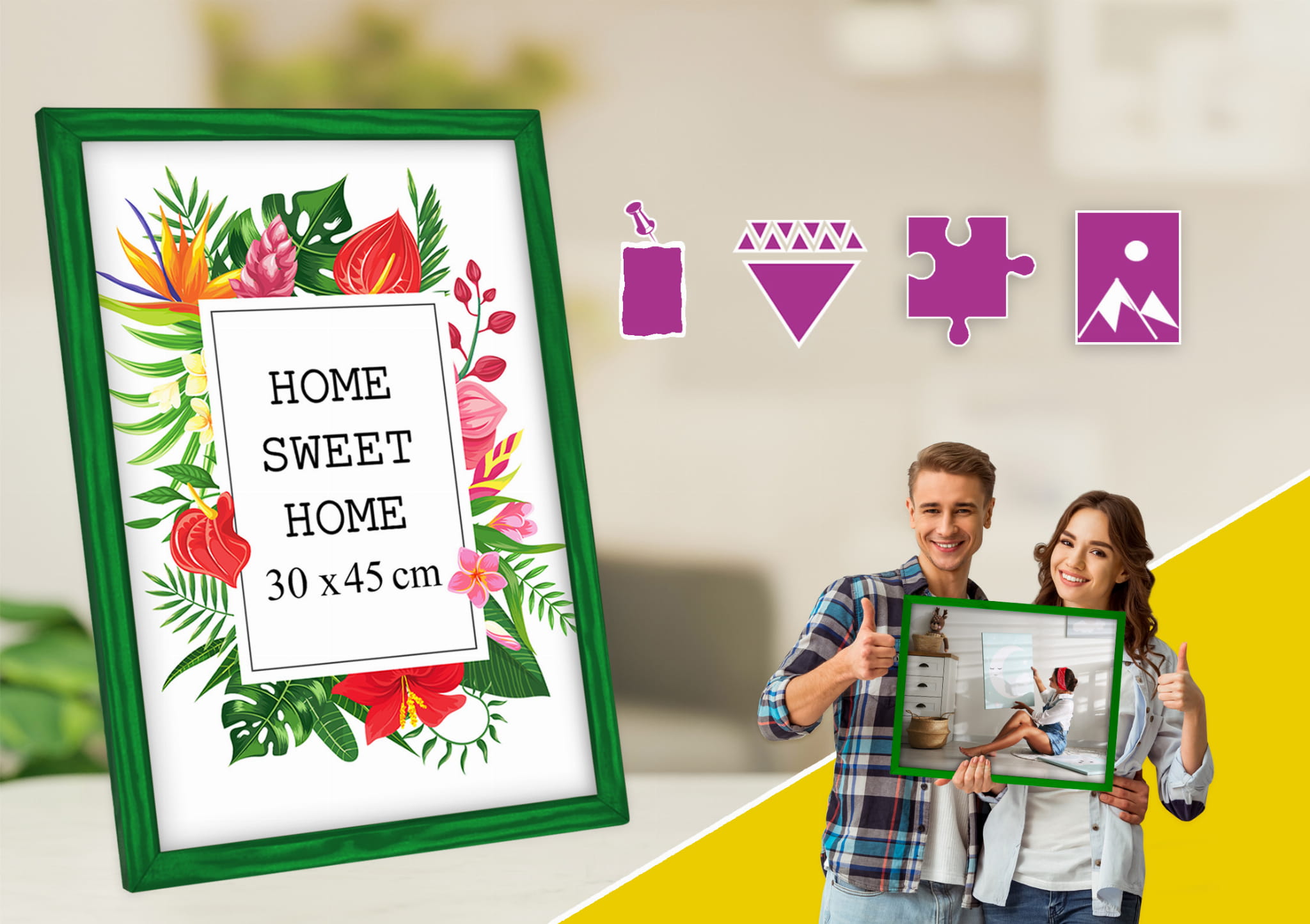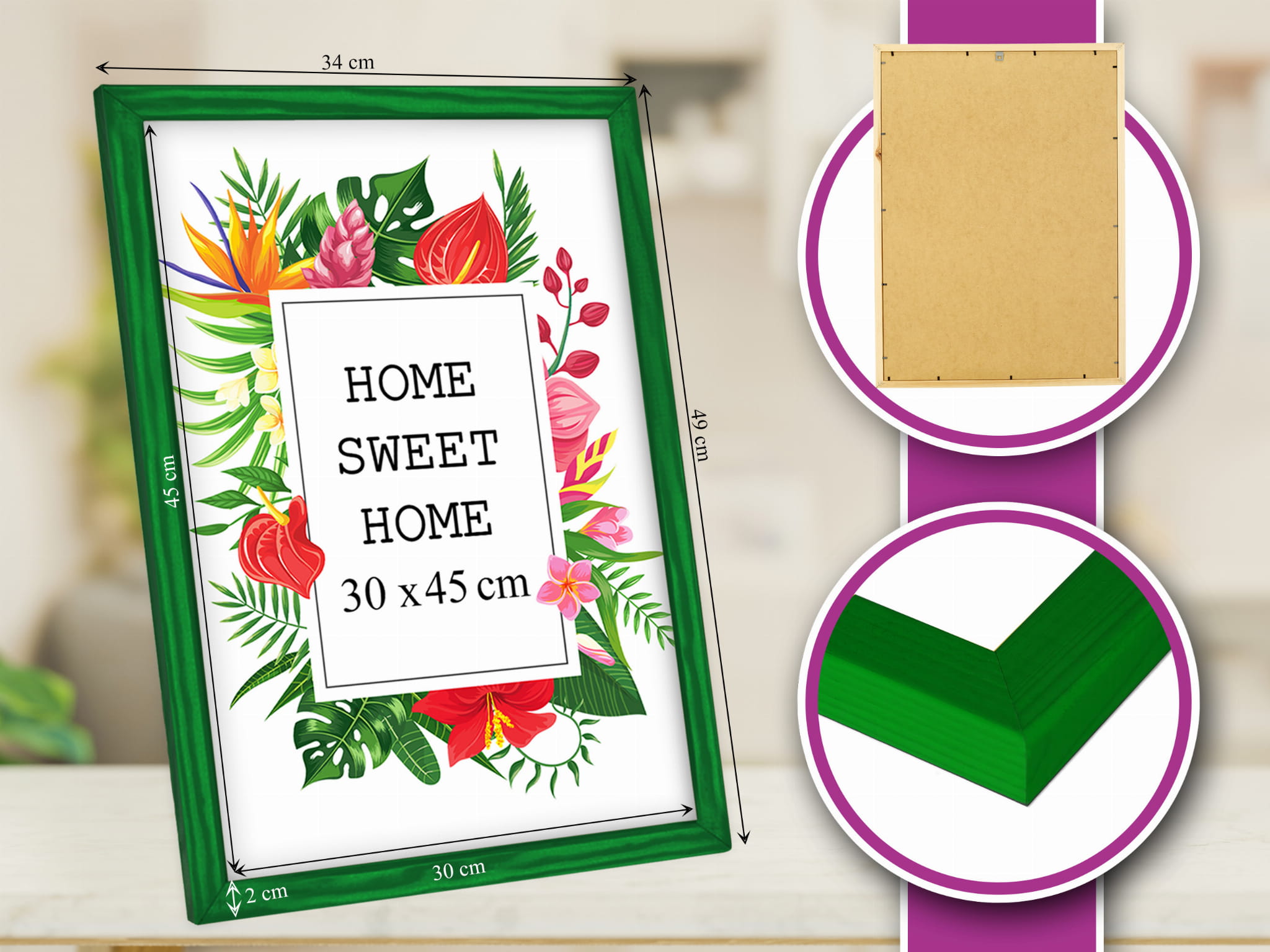 Minimal frame, maximum impact. I chose the green color and used it for a photo in size 40x50 cm. Looks great in the living room. the frame sits straight and looks tidy, and the front cover keeps the photo protected. Makes the photo stand out beautifully. Looks great right out of the box. Note: The color can look slightly different in warm vs. cool lighting. Will order more for a full set.