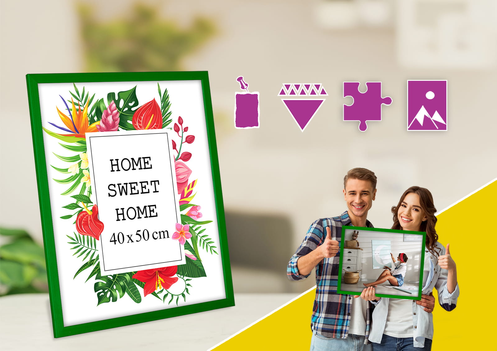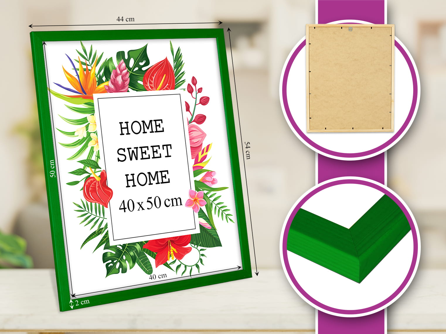 Beautiful frame for prints and photos. I chose the green color and used it for a photo/print/certificate in size 40x50 cm. Looks great in the bedroom. it’s easy to swap photos, and it’s lightweight but feels solid. It matches my decor perfectly. Everything arrived as described. Works perfectly for my needs.