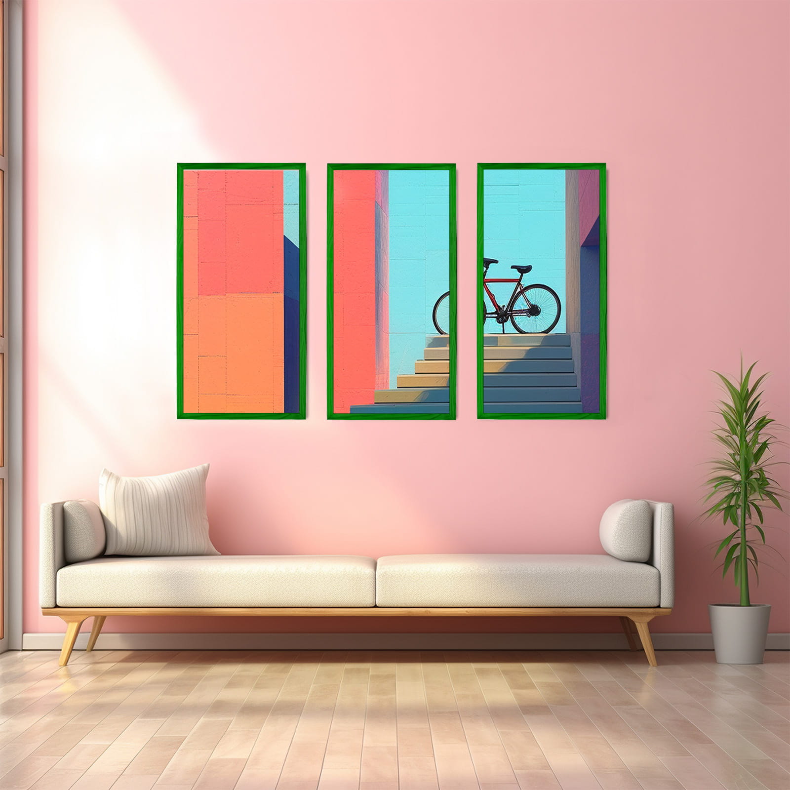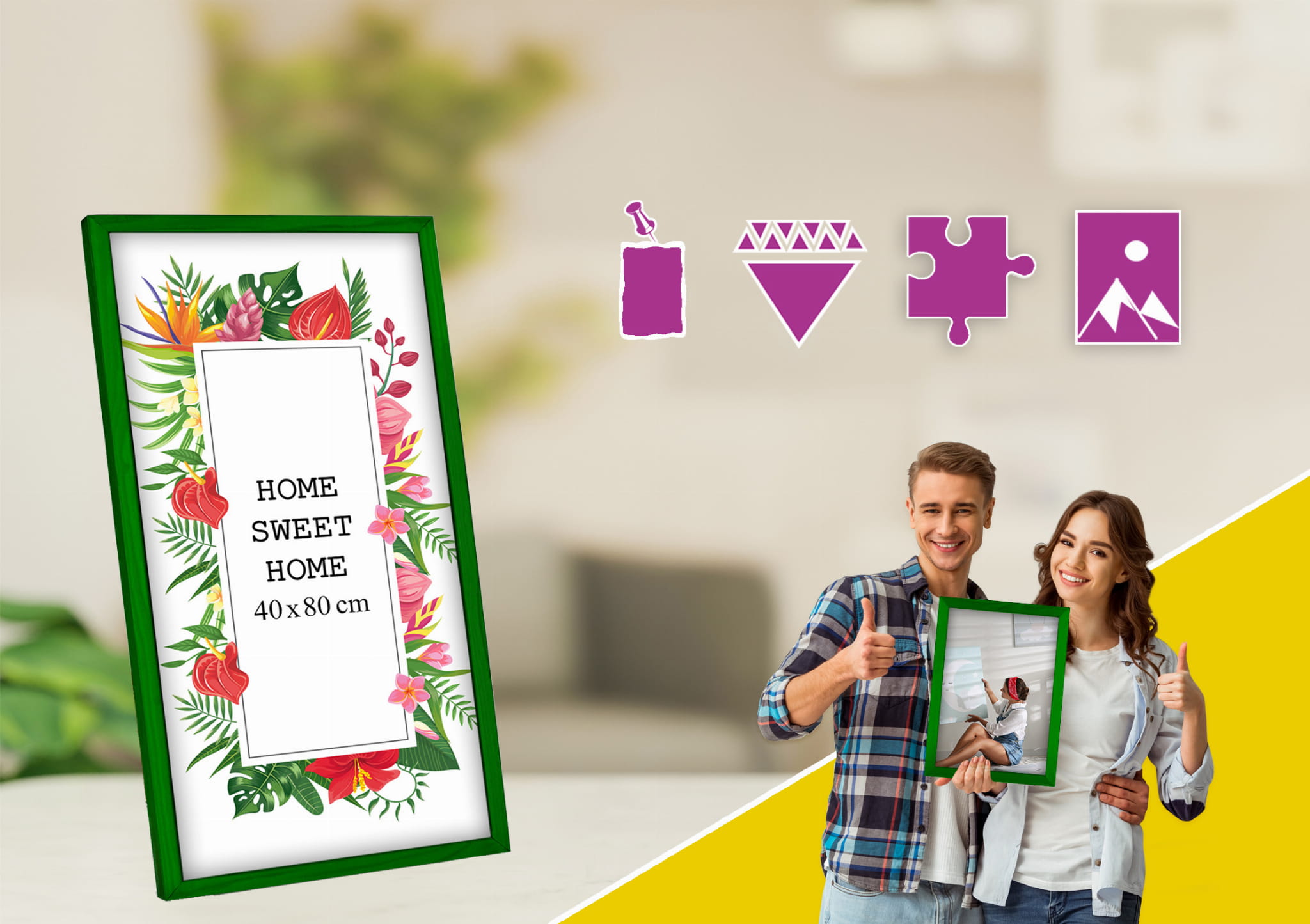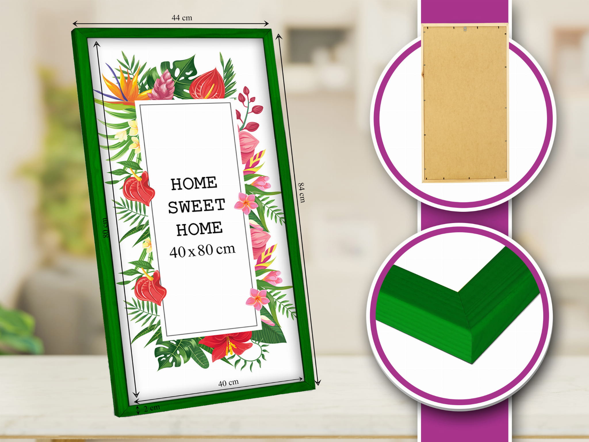 Love these colorful frames. I chose the green color and used it for a photo in size 40x80 cm. Looks great on the wall. it's easy to swap photos, and the hanging hardware feels secure. It matches my decor perfectly. Happy with the quality for the price. Happy to recommend it.