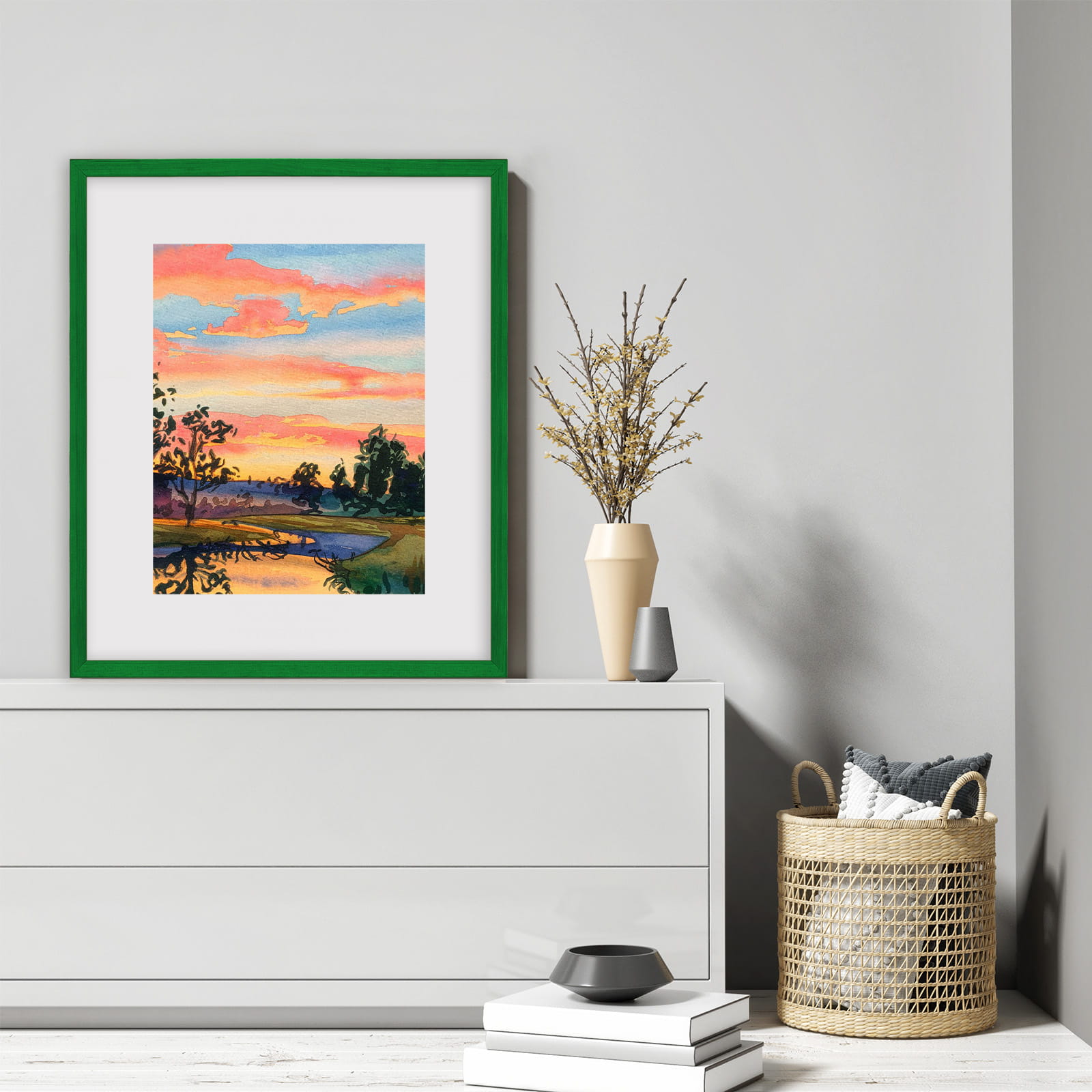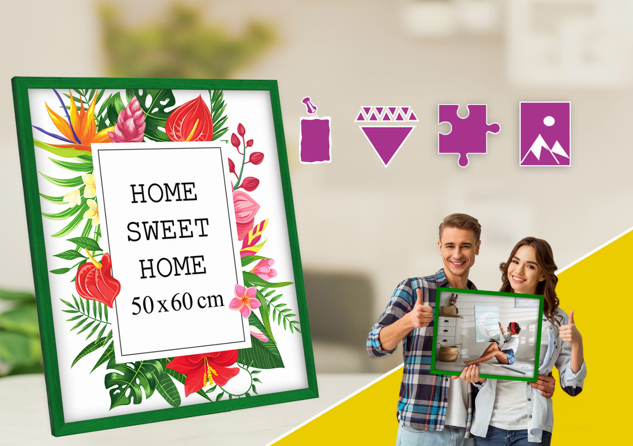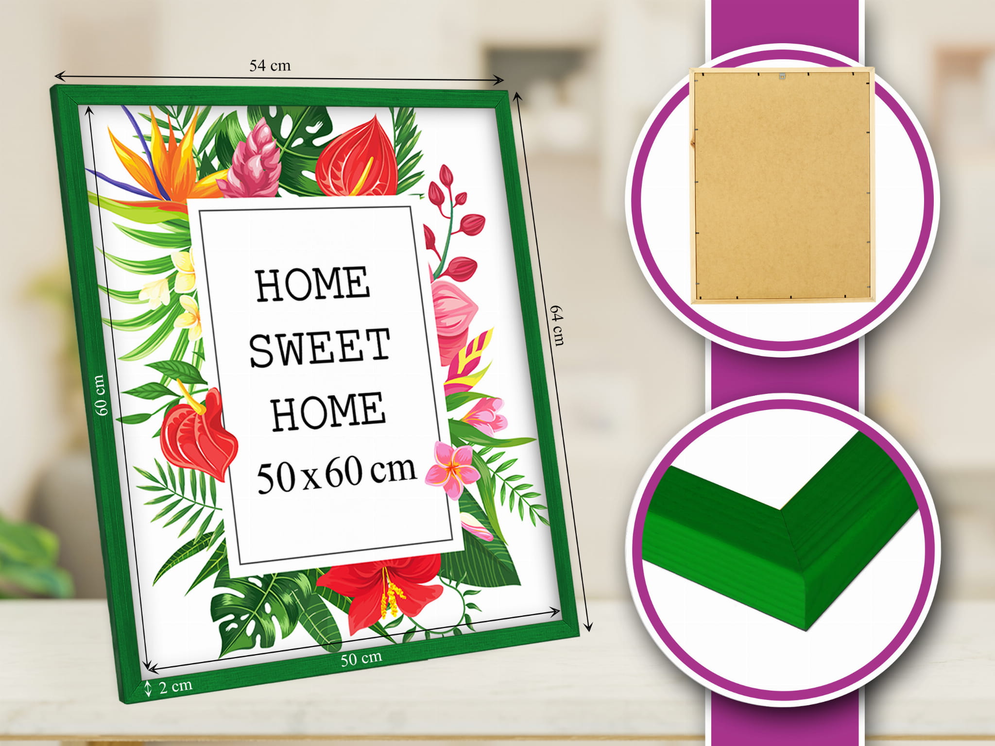 Perfect for a gallery wall. I chose the green color and used it for a photo in size 50x60 cm. Looks great on a bedside table. the stand is stable on a shelf, and the hanging hardware feels secure. Looks great in a Scandinavian-style interior. Packaging was secure. Will order more for a full set.