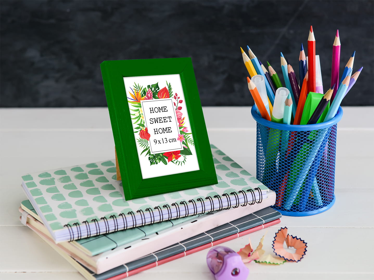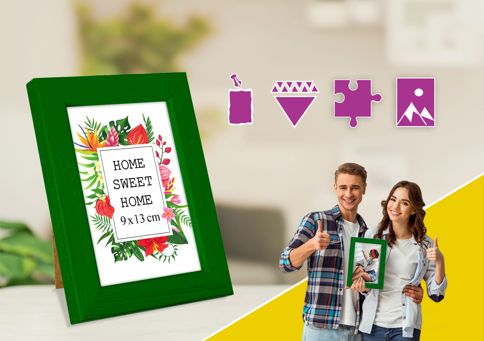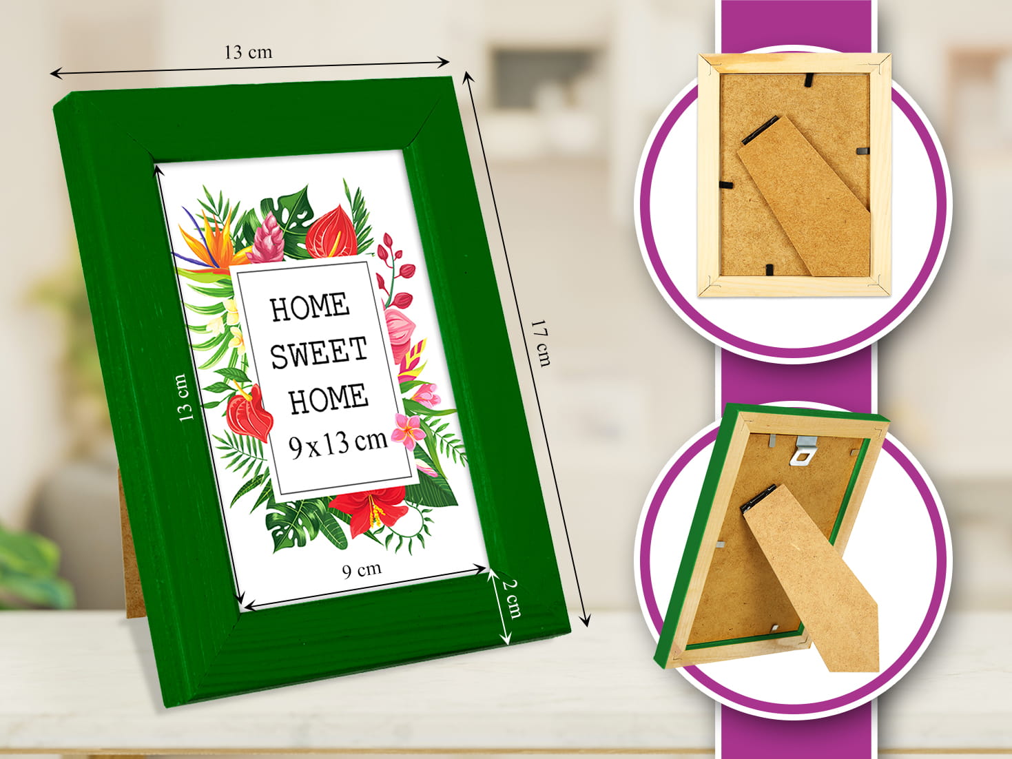 Great set of frames for matching decor. I chose the green color and used it for a photo in size 13x18 cm Looks great on a desk. it holds the print flat and neat, and the corners are well finished. The pop of color makes the wall more fun. Looks great right out of the box. Works perfectly for my needs.