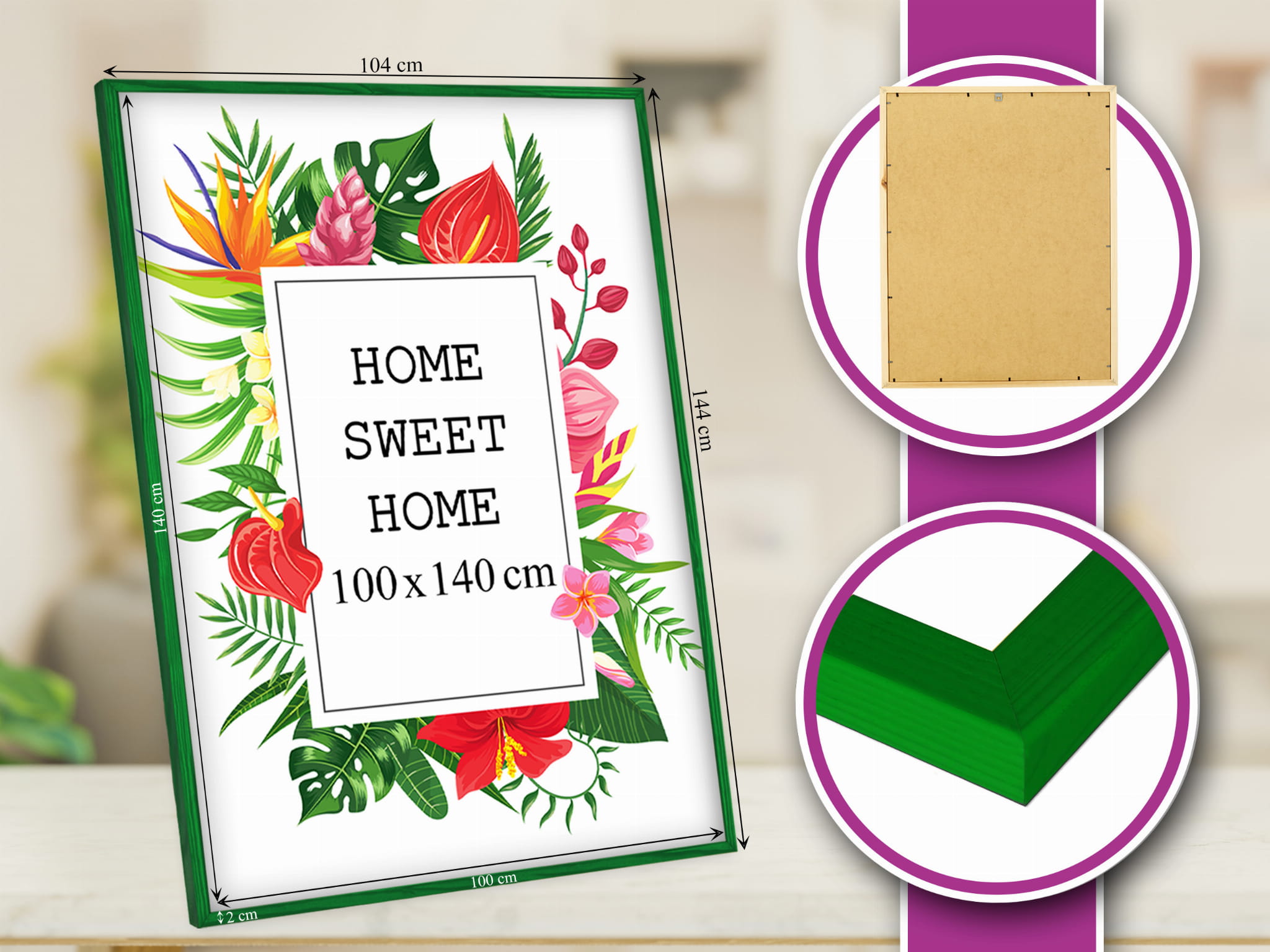 Wooden Green Photo Frame 40 x 55 in (100 x 140 cm)