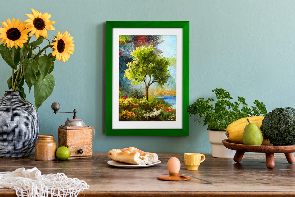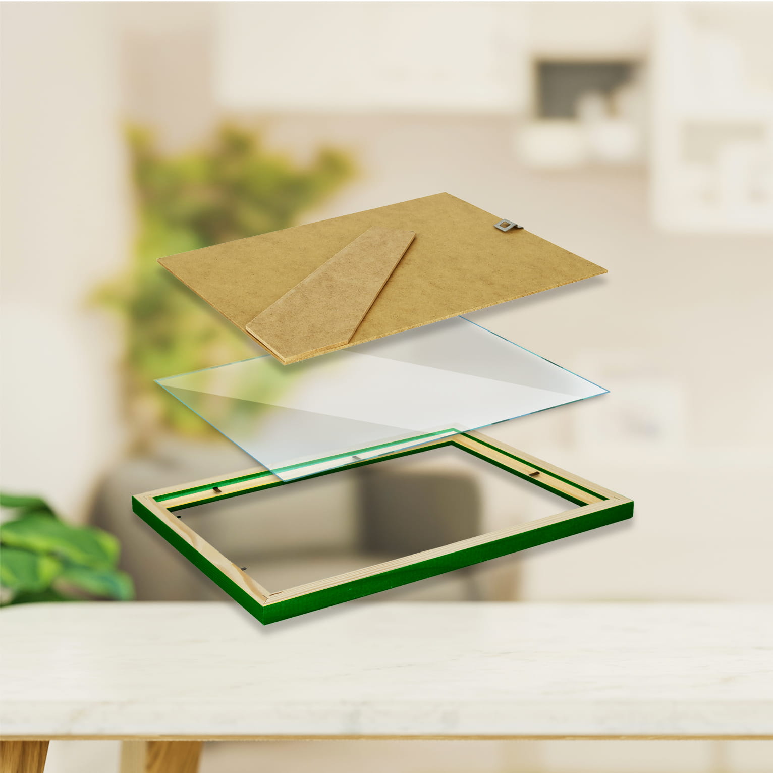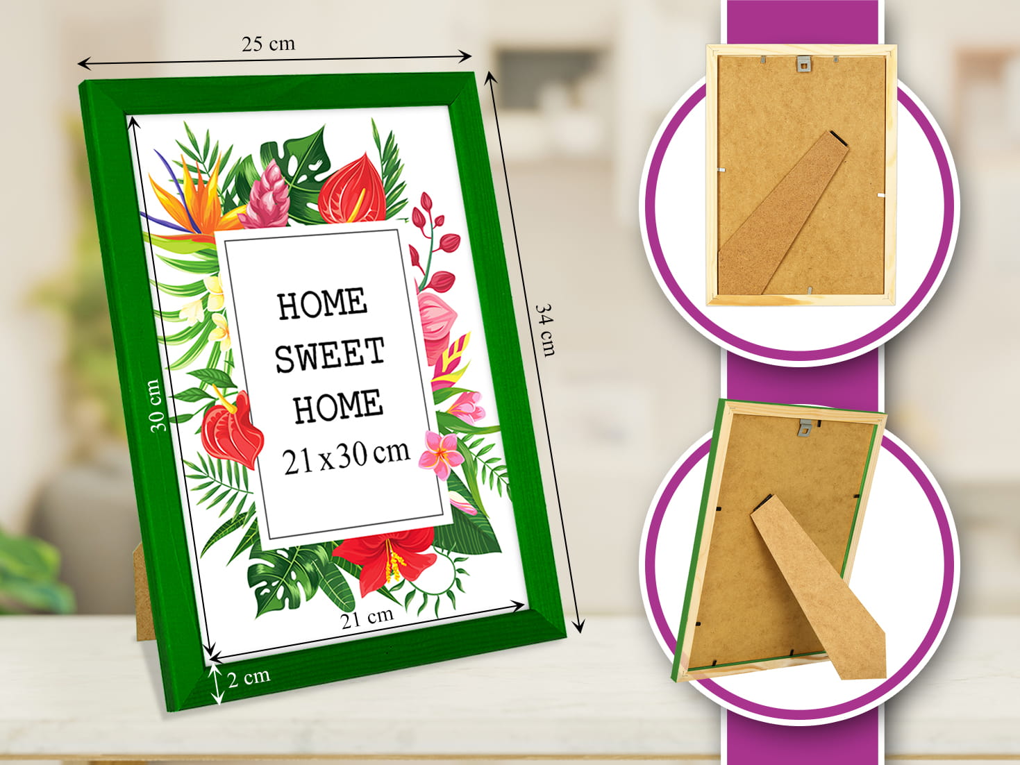Perfect for gifting with a photo inside. I chose the green color and used it for a print in size 21x30 cm. Looks great on the wall. the cover is clear and shows the photo nicely, and it's easy to swap photos. The natural wood tone looks warm and cozy. Packaging was secure. Note: There can be a bit of reflection in bright light. Overall, a great purchase.