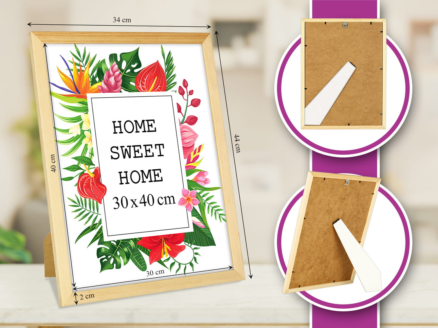 Does the job and looks stylish. I chose the natural wood color and used it for a certificate in size 30x40 cm. Looks great on a shelf. the hanging hardware feels secure, and it holds the print flat and neat. Looks great in a Scandinavian-style interior. No damage in transit. Works perfectly for my needs.