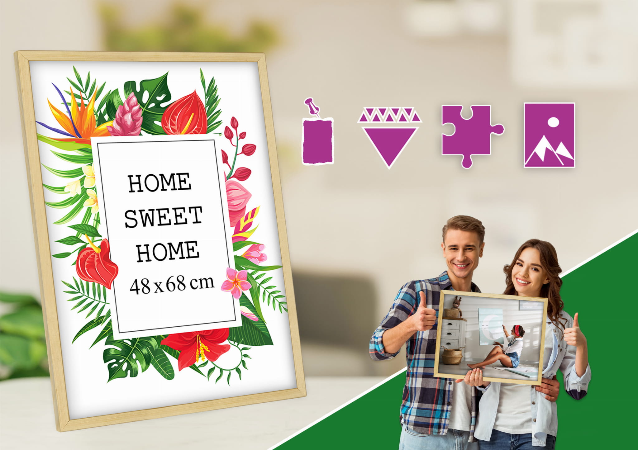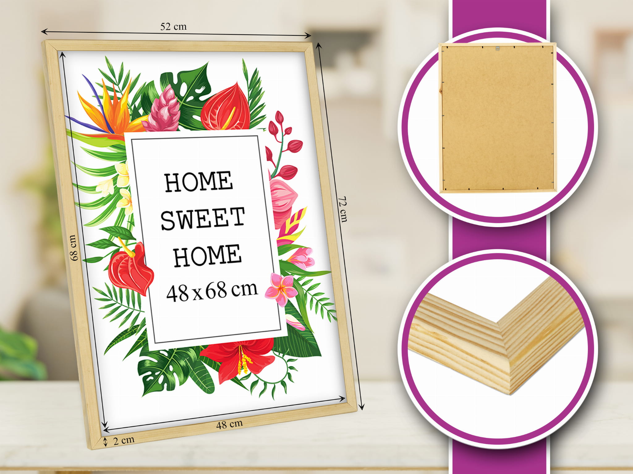 Perfect for a gallery wall. I chose the natural wood color and used it for a kids' drawing in size 48x68 cm. Looks great on a desk. the profile is slim and modern, and the back panel is easy to open and close. Great for a modern, minimal look. Packaging was secure. Happy to recommend it.