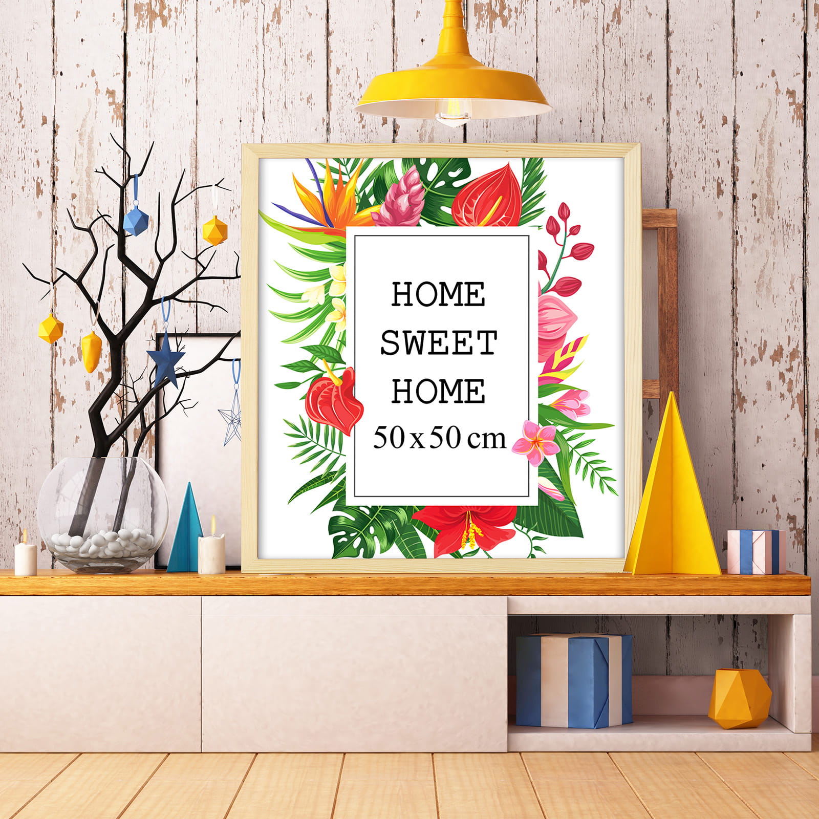 Great set of frames for matching decor. I chose the natural wood color and used it for a photo in size 50x50 cm. Looks great in the living room. it's easy to swap photos, and the corners are well finished. It adds a nice accent without being too loud. No damage in transit. Happy to recommend it.