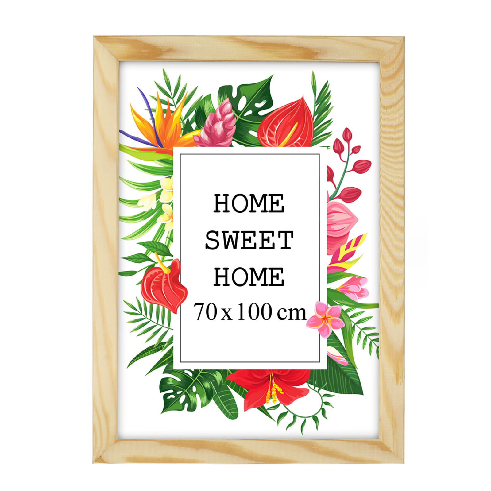 Happy with this purchase. I chose the natural wood color and used it for a portrait photo in size 70x100 cm. Looks great on a sideboard. it's easy to swap photos, and the cover is clear and shows the photo nicely. The pop of color makes the wall more fun. Everything arrived as described. Would recommend.