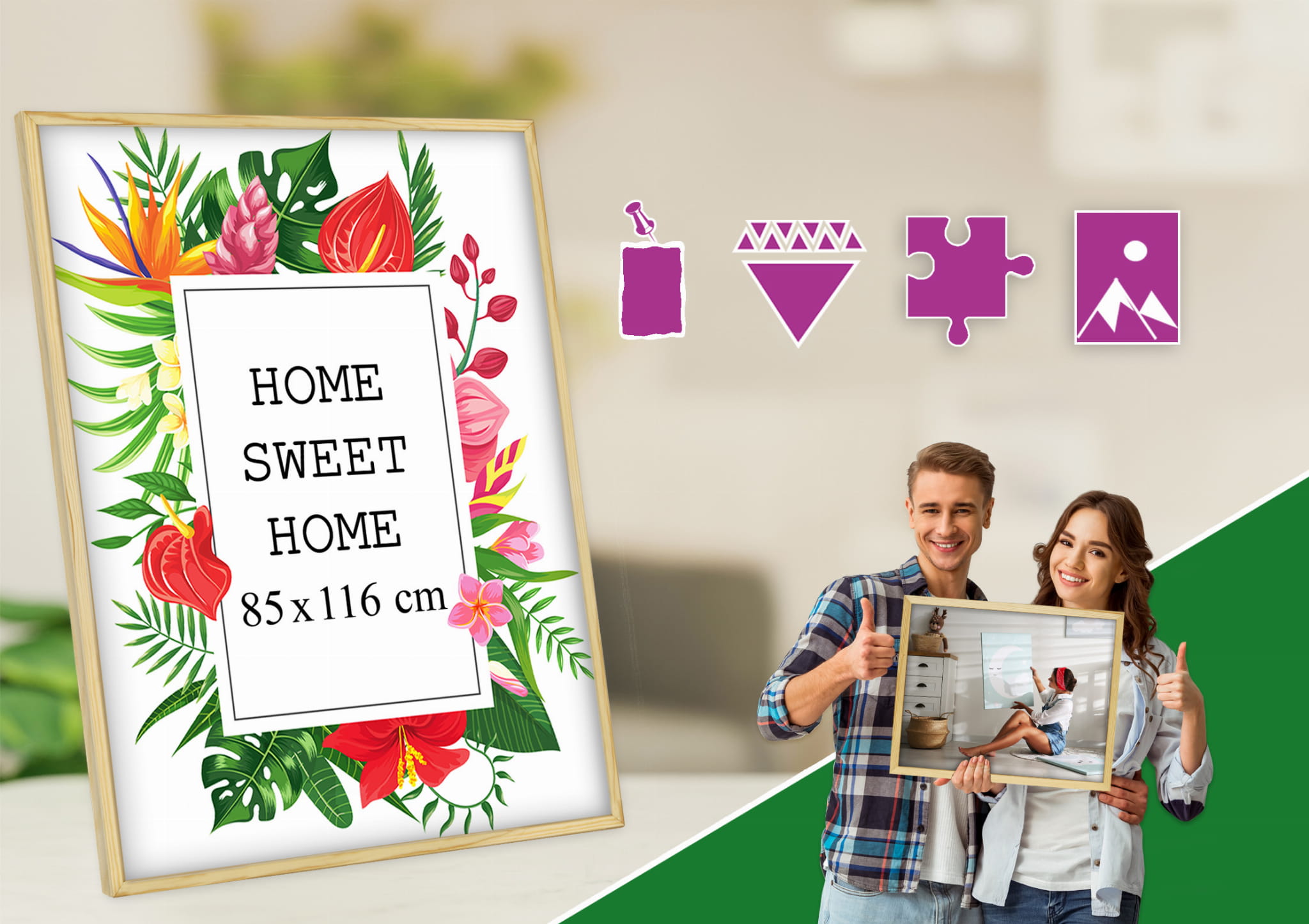 Great way to display family pictures. I chose the natural wood color and used it for a print in size 85x116 cm. Looks great in the kids room. the stand is stable on a shelf, and the frame sits straight and looks tidy. Great for a modern, minimal look. Everything arrived as described. Note: I wish hanging hardware was included for every wall type. Would purchase again in another color.