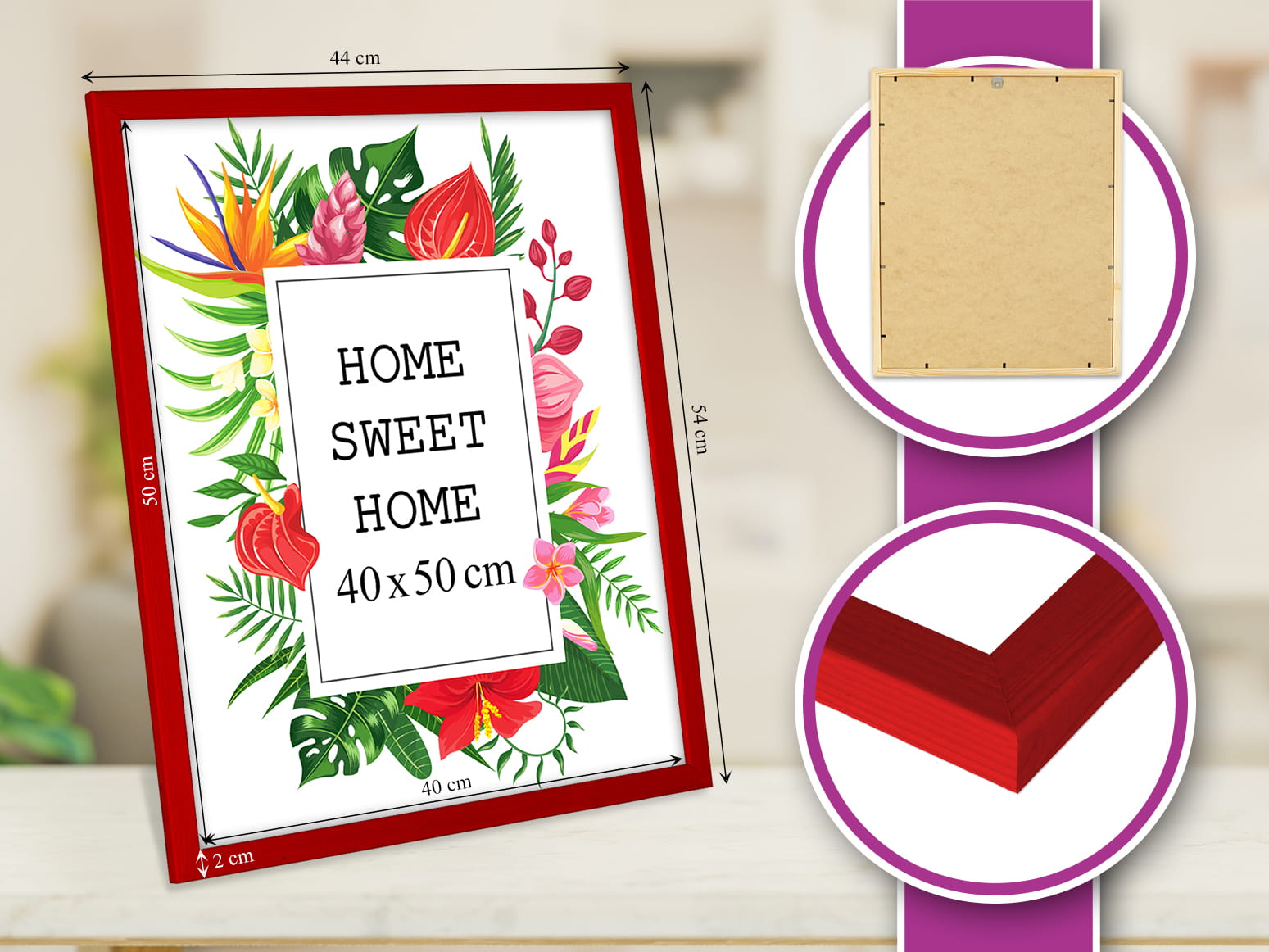 Solid frame and looks great on the wall. I chose the red color and used it for a print in size 40x50 cm. Looks great in the kids’ room. it’s lightweight but feels solid, and the color looks true to the photos. Makes the photo stand out beautifully. Looks great right out of the box. I’d buy again.