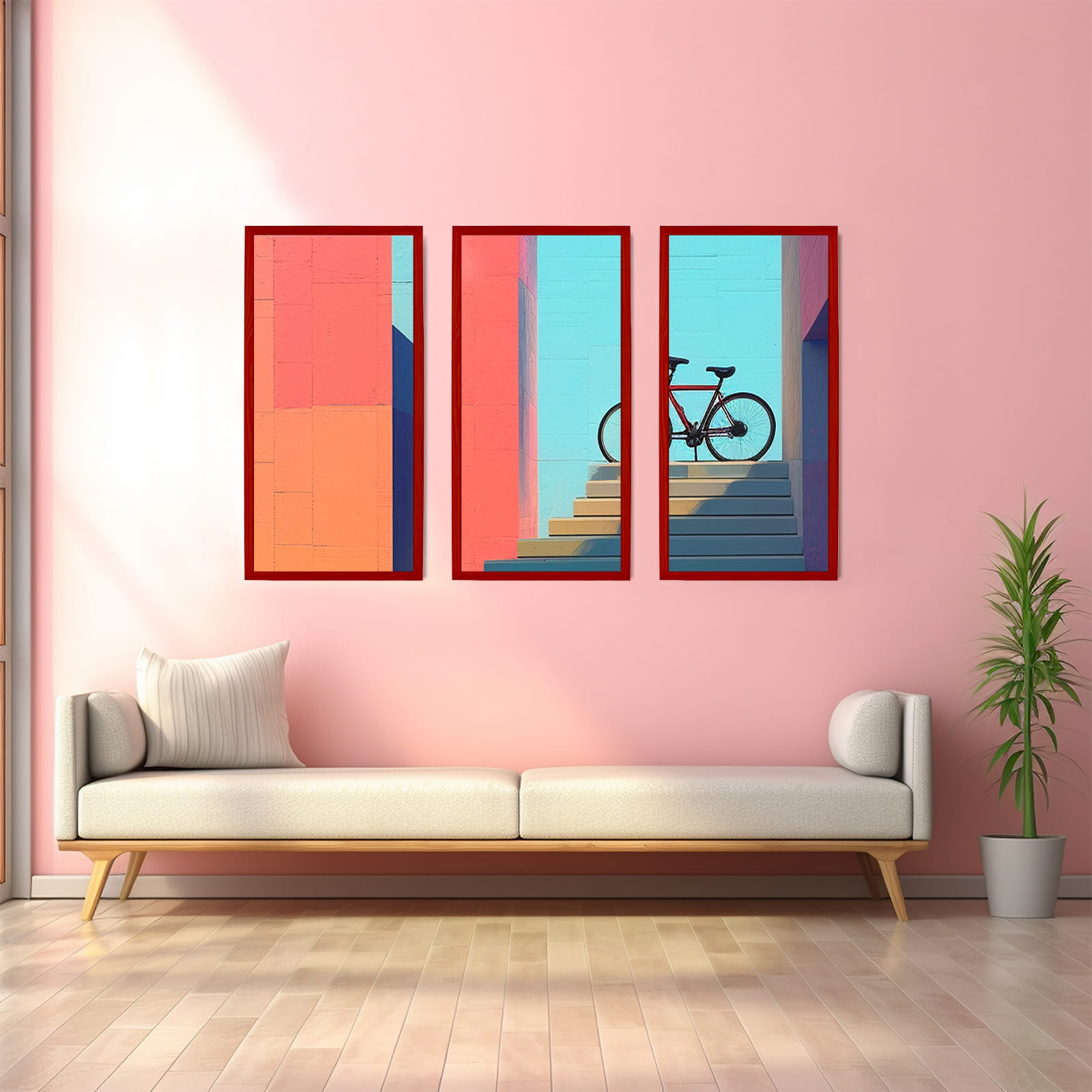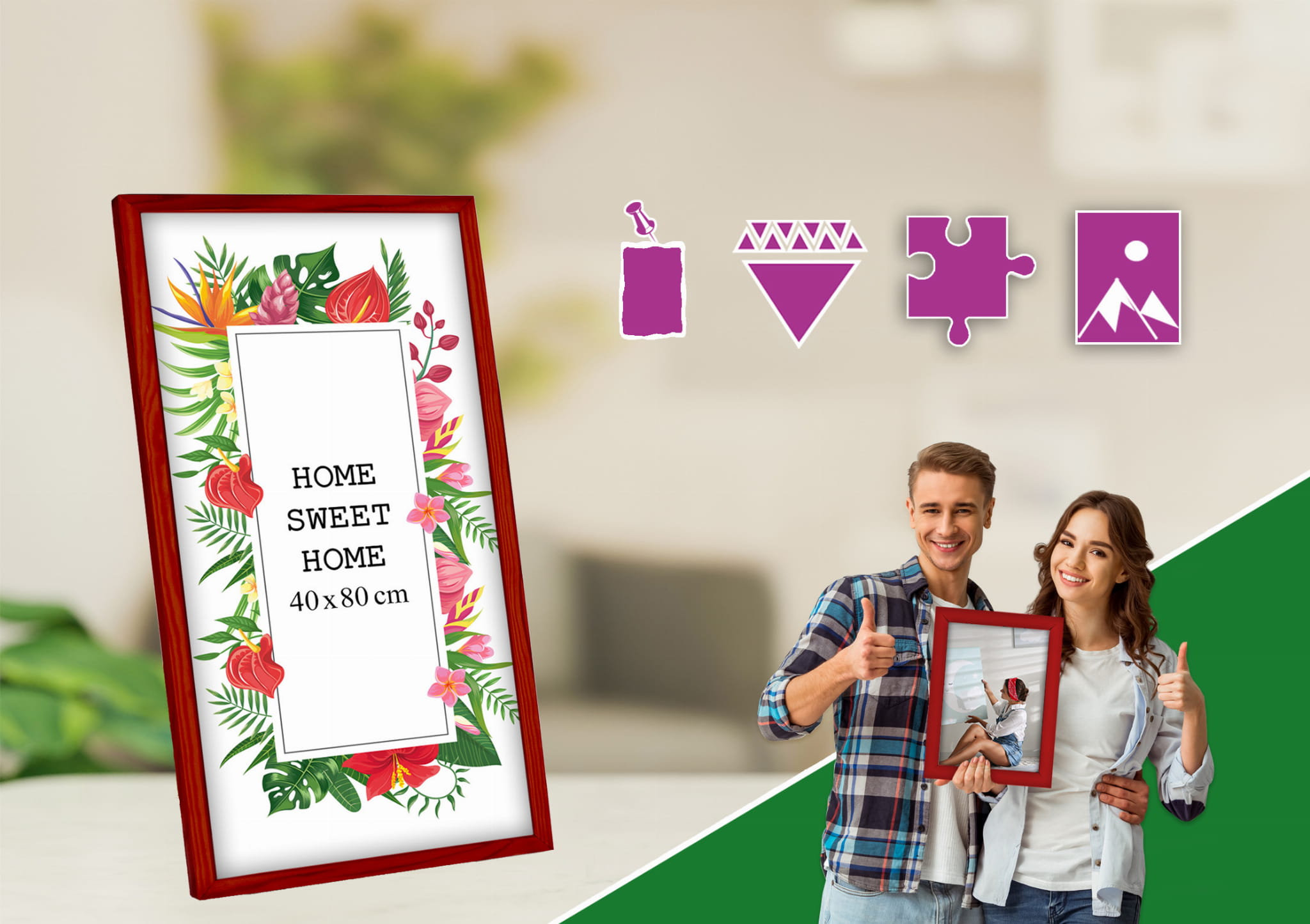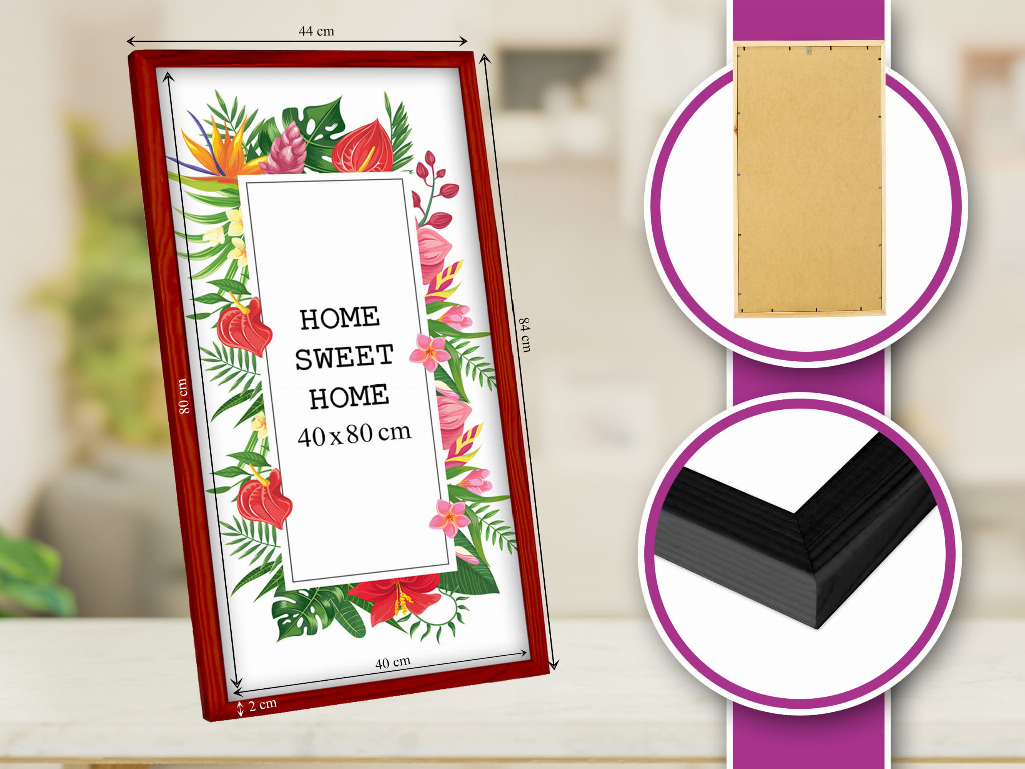 Solid frame and looks great on the wall. I chose the red color and used it for a photo in size 40x80 cm. Looks great on a sideboard. it works well both standing and hanging, and the color looks true to the photos. Great for a modern, minimal look. Looks great right out of the box. Glad I chose this color.