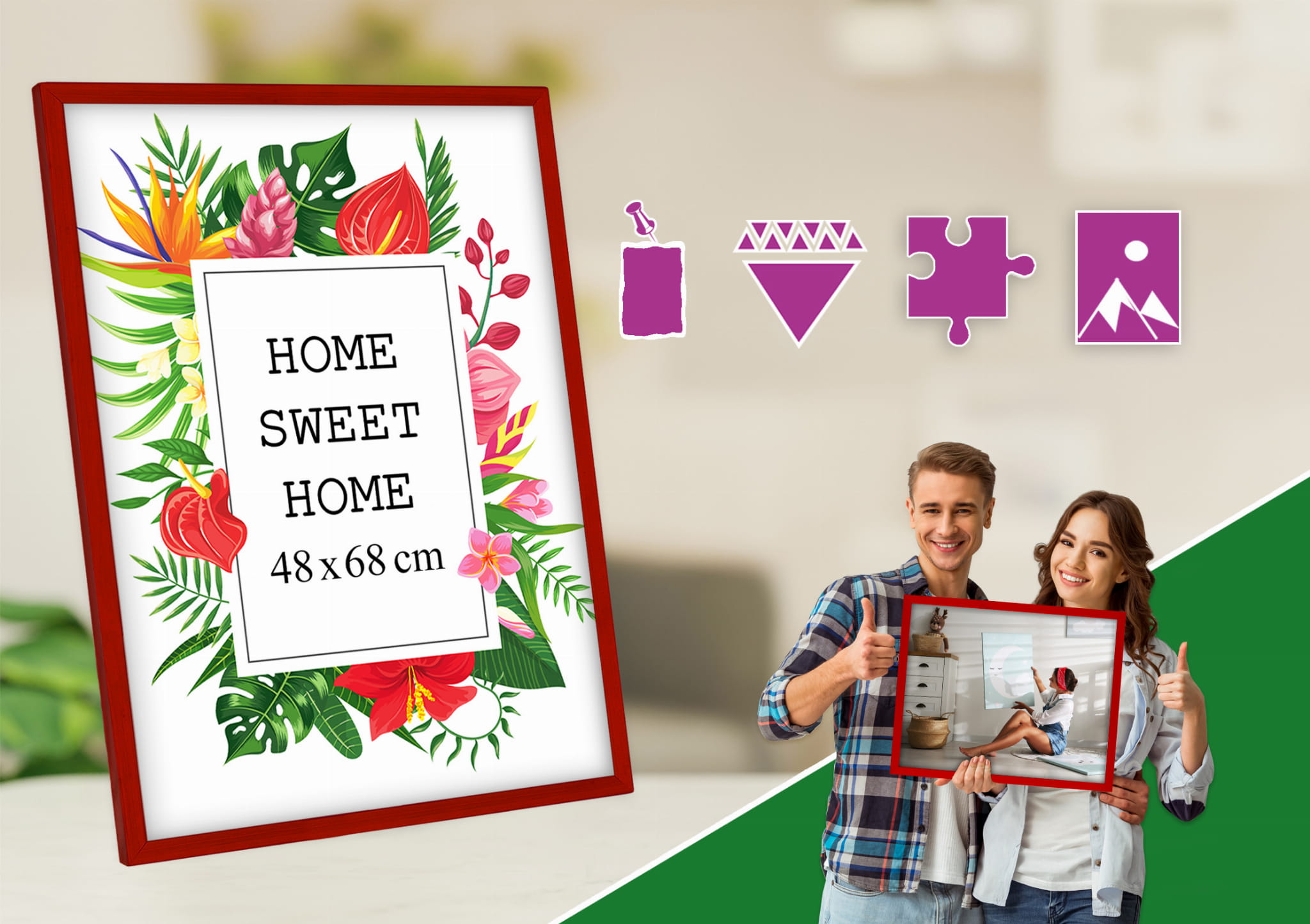 Looks lovely and feels well made. I chose the red color and used it for a photo in size 48x68 cm. Looks great on a shelf. the stand is stable on a shelf, and the profile is slim and modern. The natural wood tone looks warm and cozy. Packaging was secure. Happy to recommend it.