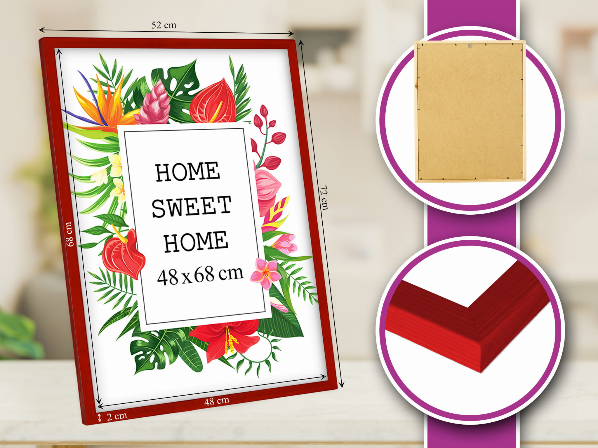 Wooden Red Photo Frame 19 x 27 in (48 x 68 cm)