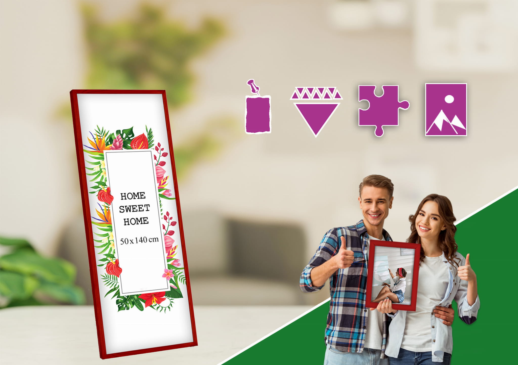 Great way to display family pictures. I chose the red color and used it for a print in size 50x140 cm. Looks great on the wall. the back panel is easy to open and close, and the frame finish is smooth and even. Makes the photo stand out beautifully. No damage in transit. Overall, a great purchase.