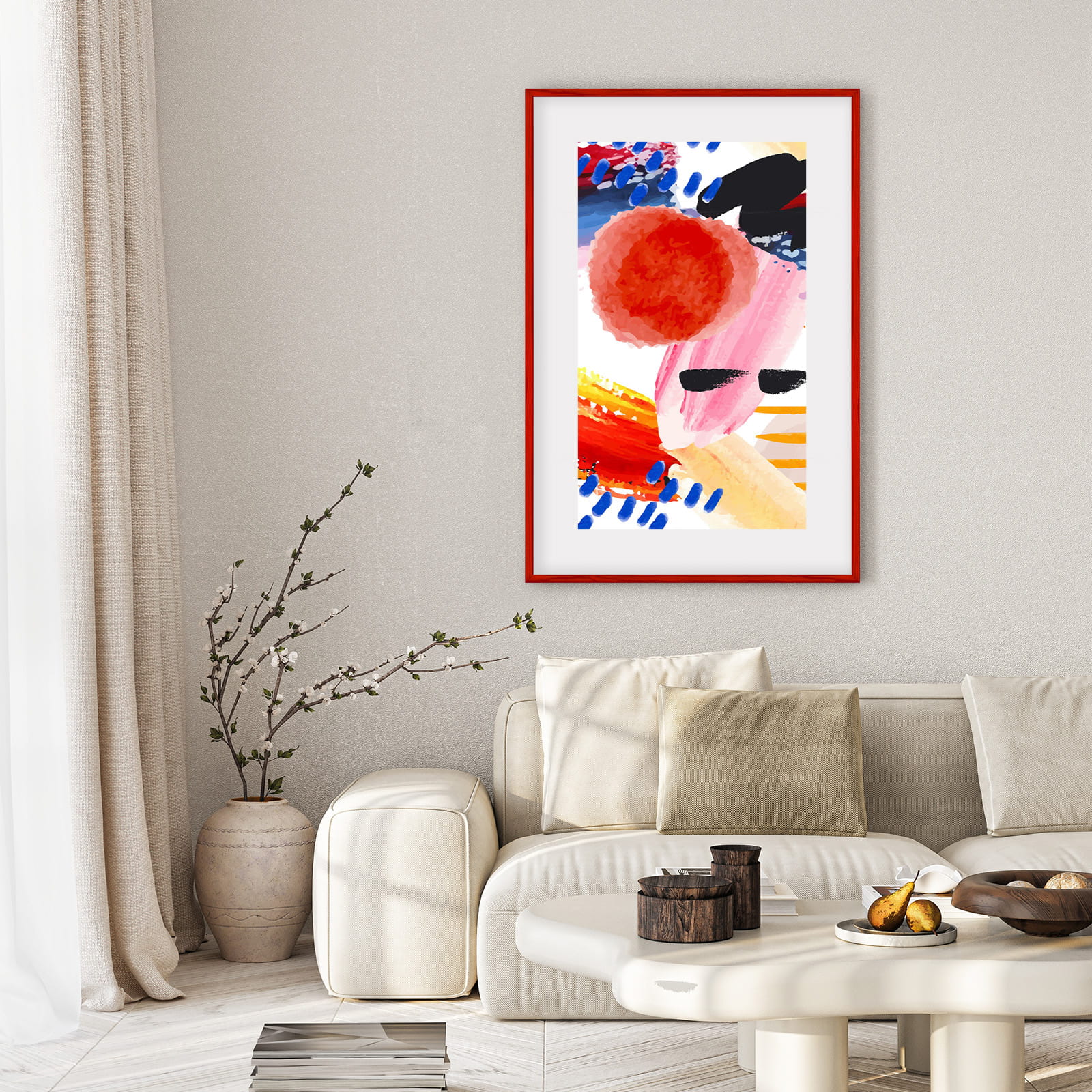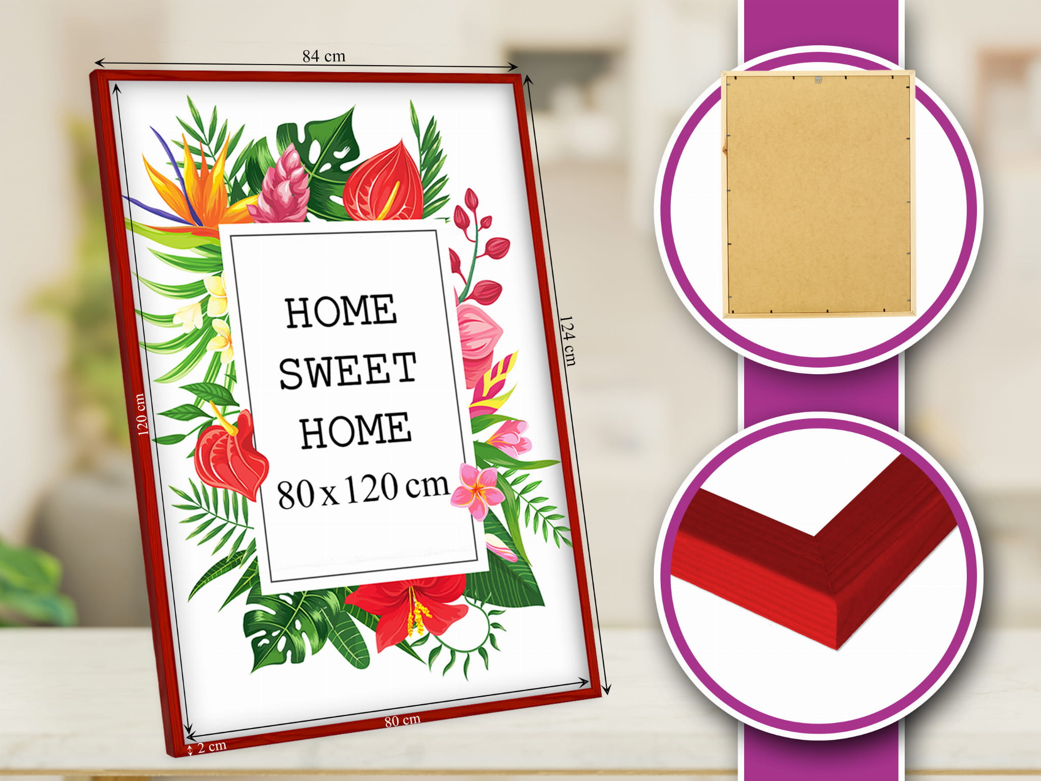 Great set of frames for matching decor. I chose the red color and used it for a poster print in size 80x120 cm. Looks great on a shelf. the frame sits straight and looks tidy, and the front cover keeps the photo protected. Pairs well with other frames in the set. Arrived quickly. Exactly what I hoped for.