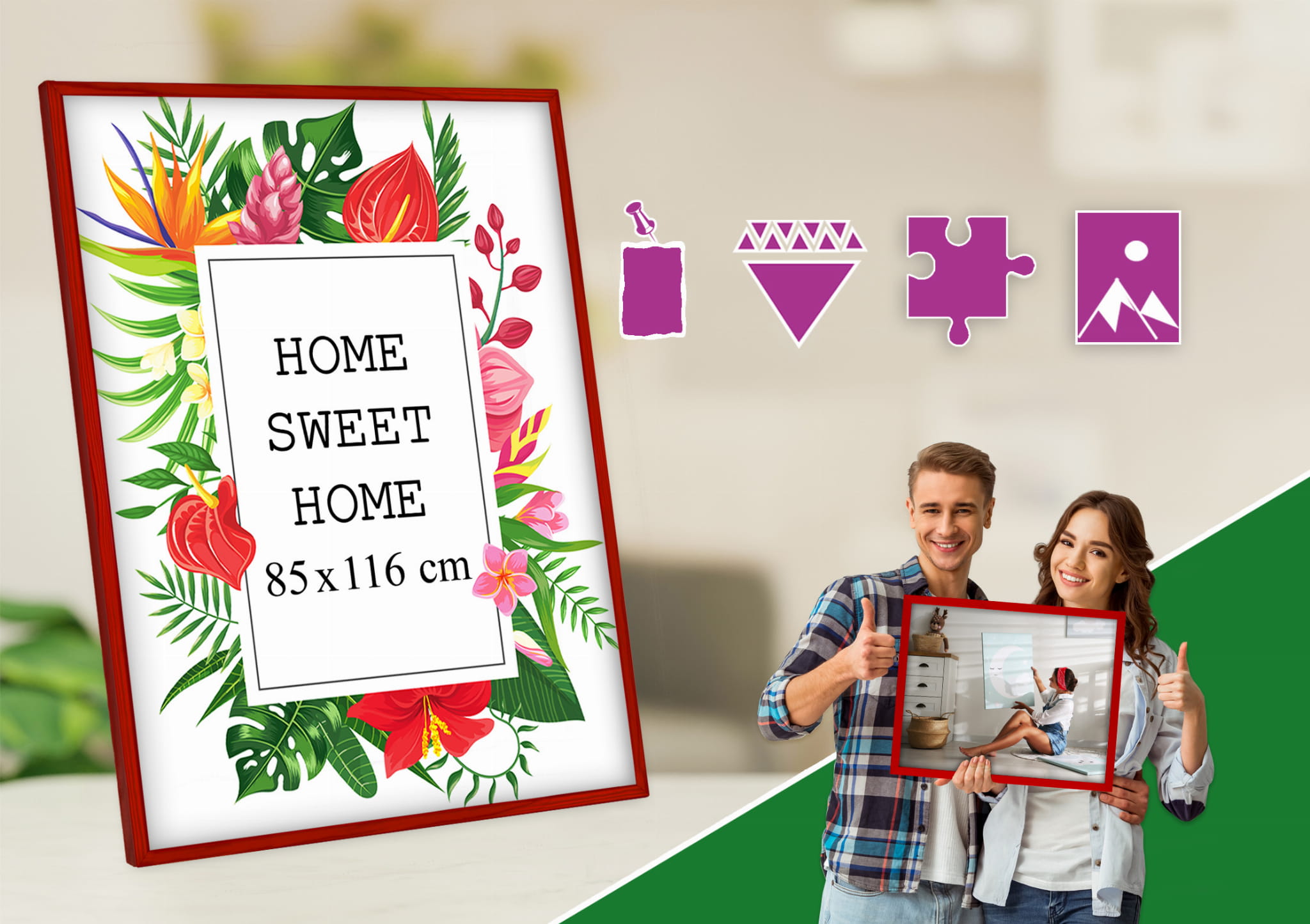 Perfect for gifting with a photo inside. I chose the red color and used it for a photo in size 85x116 cm Looks great in the home office. the frame finish is smooth and even, and it’s lightweight but feels solid. Great for a modern, minimal look. No damage in transit. Note: For thicker prints, you may need to adjust the backing slightly. Exactly what I hoped for.