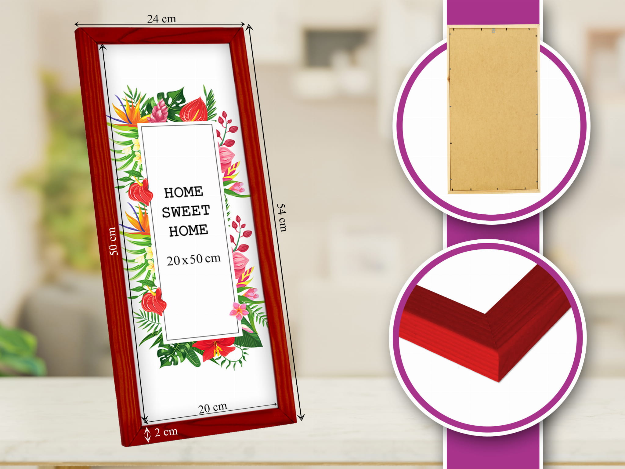Wooden Red Photo Frame 8 x 20 in (20 x 50 cm)