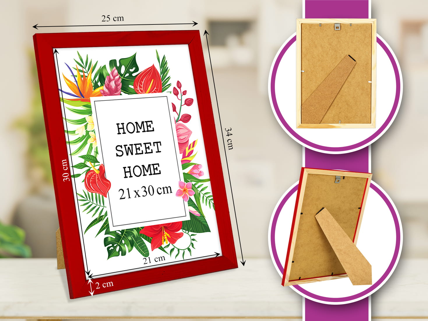 Wooden Red Photo Frame A4 8 x 12 in (21 x 29,7 cm)