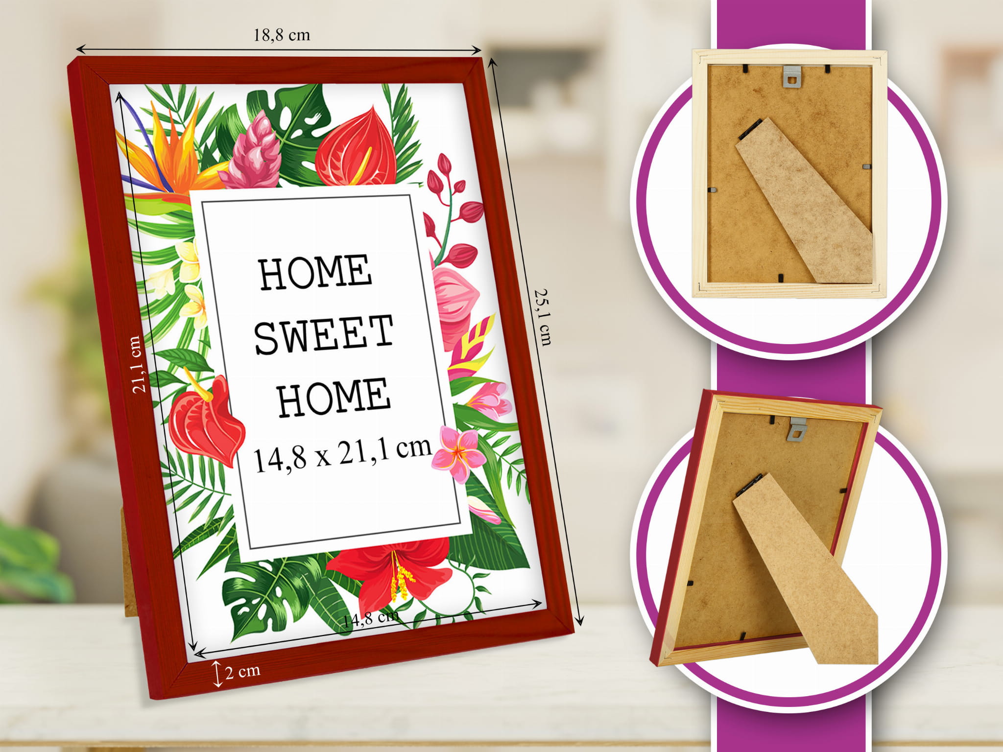 Wooden Red Photo Frame A5 6 x 8 in (14,8 x 21 cm)