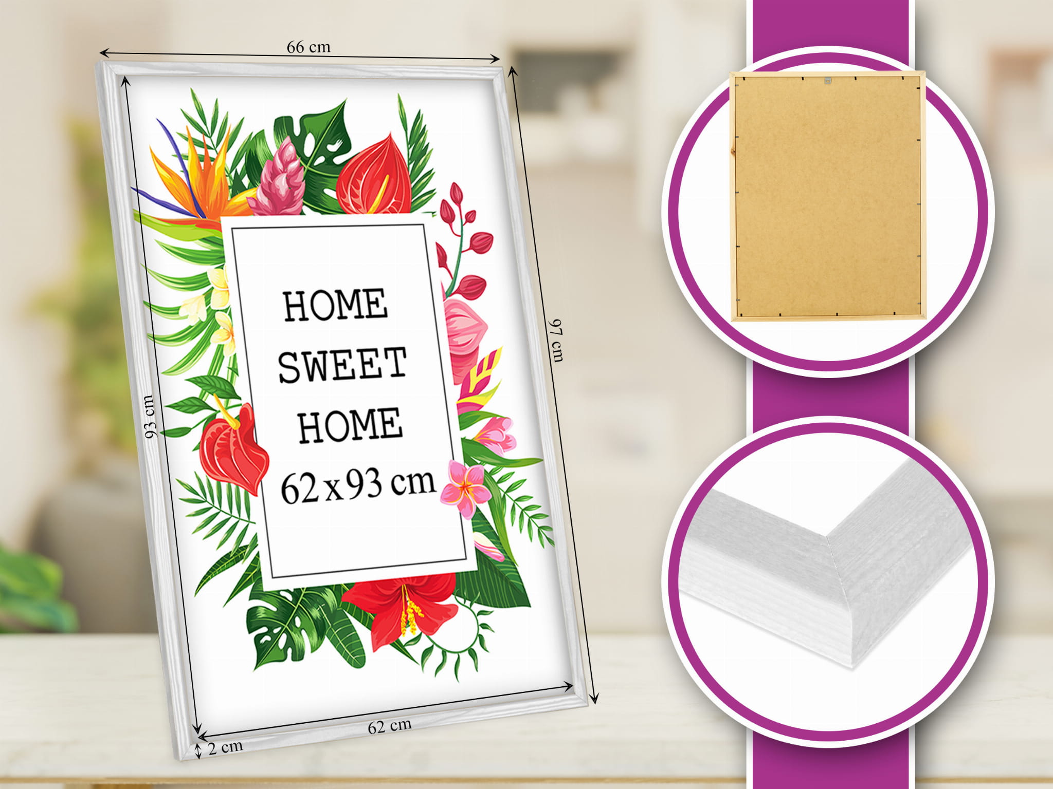 Love these colorful frames. I chose the white color and used it for a photo in size62x93 cm. Looks great on a sideboard. it feels sturdy and not flimsy, and the back panel is easy to open and close. Makes the photo stand out beautifully. No damage in transit. I'd buy again.