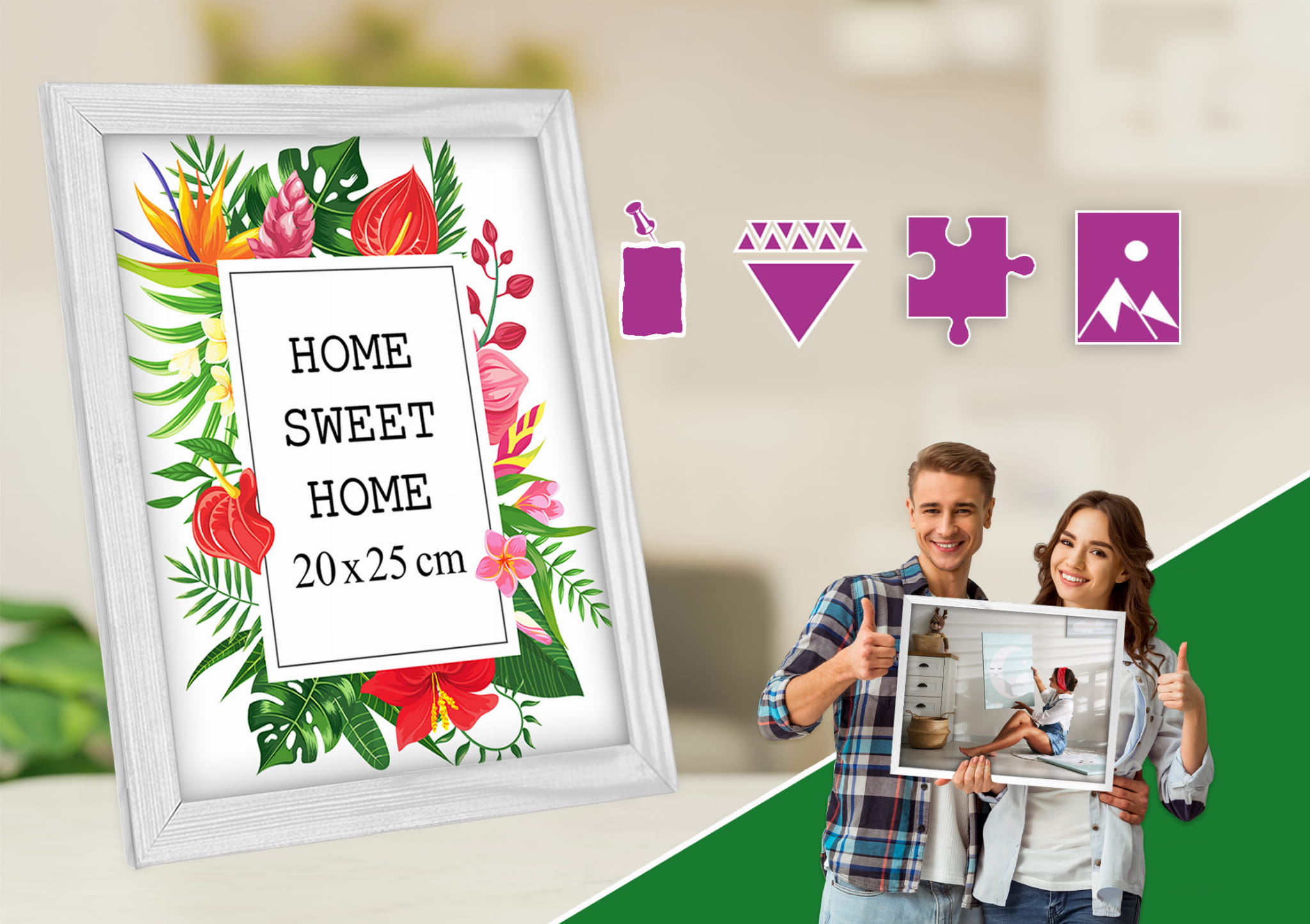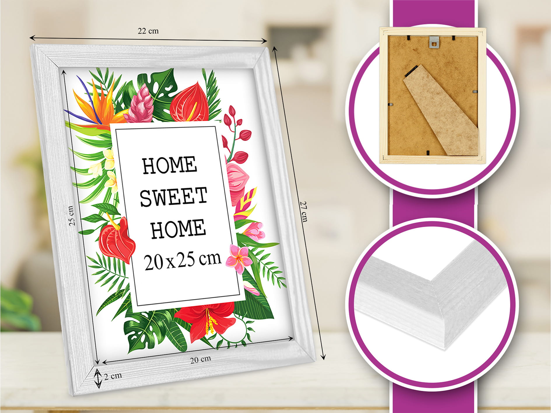 Beautiful frame for prints and photos. I chose the white color and used it for a photo in size 20x25 cm . Looks great on a sideboard. the frame finish is smooth and even, and the frame sits straight and looks tidy. The pop of color makes the wall more fun. Everything arrived as described. Will order more for a full set.