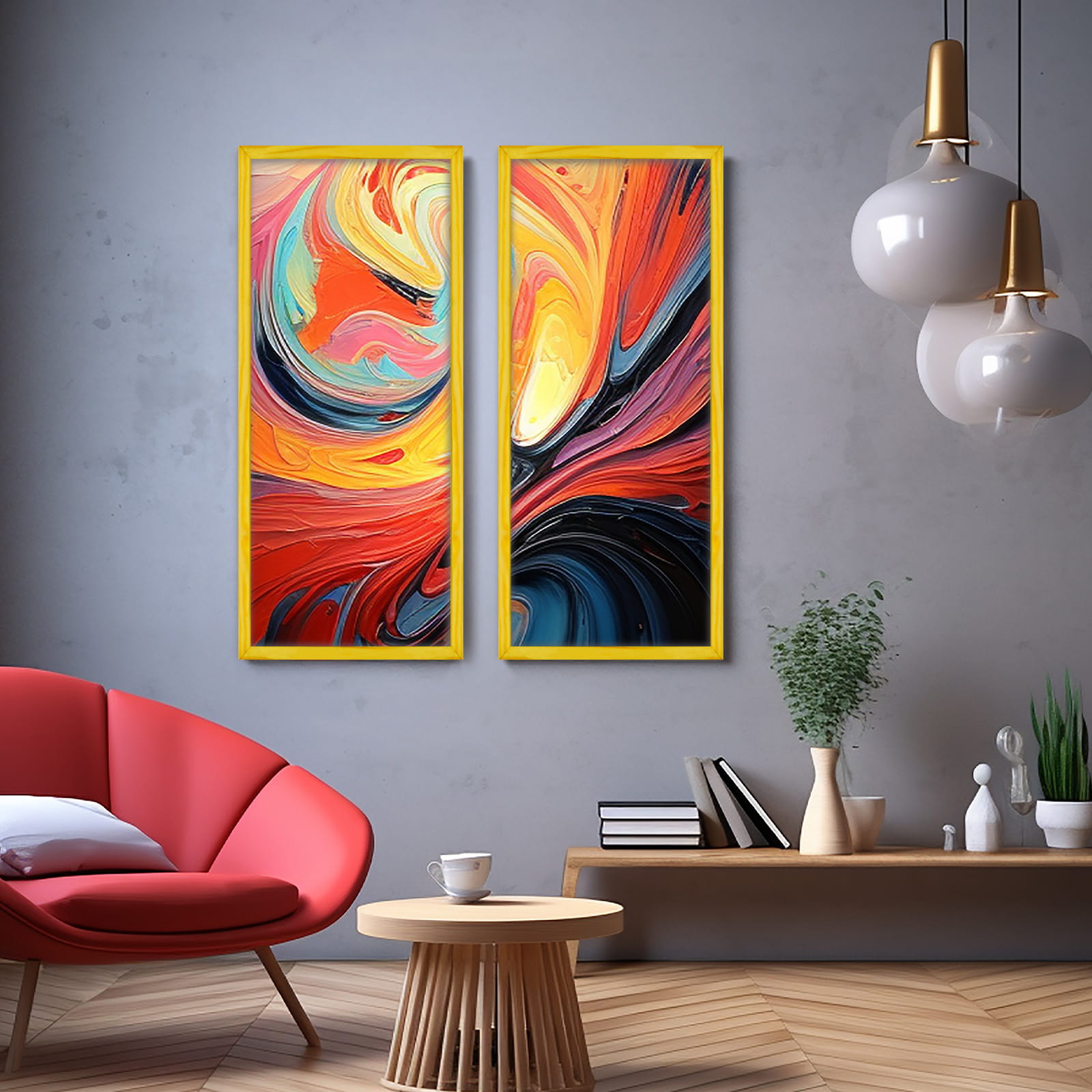 Wooden Yellow Photo Frame 14 x 32 in (35 x 80 cm)
