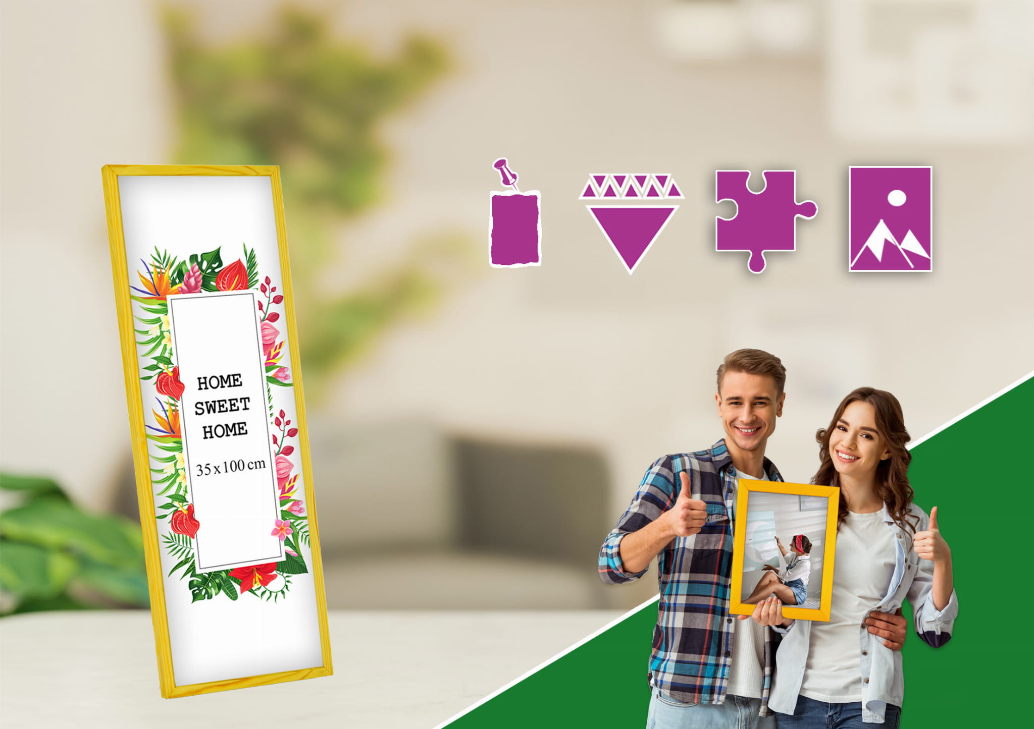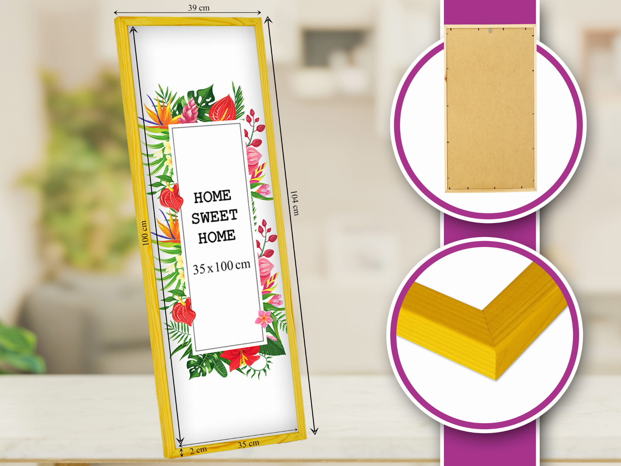 A simple frame that upgrades the room. I chose the yellow color and used it for a family photo in size 35x100 cm. Looks great in the home office. the front cover keeps the photo protected, and the back panel is easy to open and close. Makes the photo stand out beautifully. Happy with the quality for the price. Would recommend.