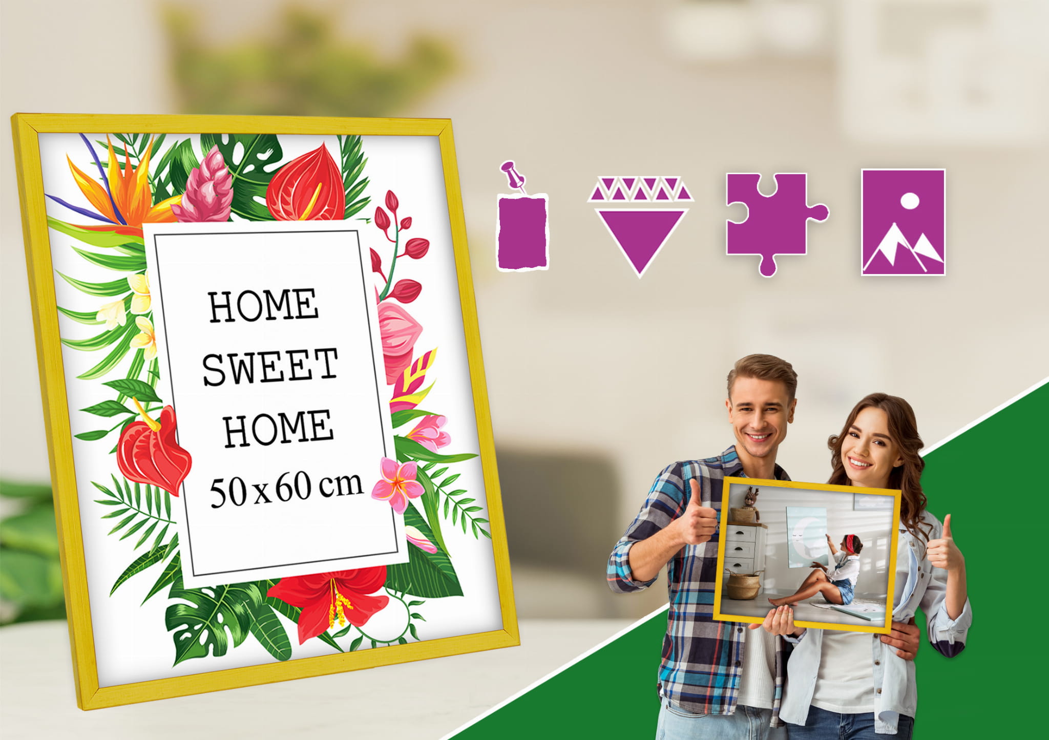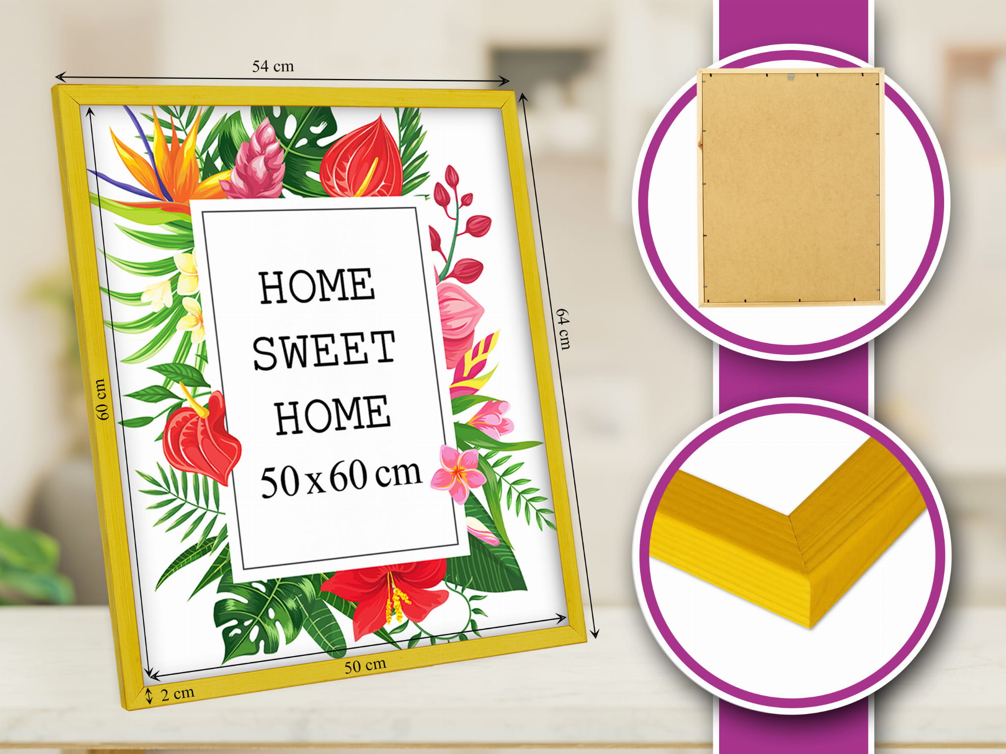 Love these colorful frames. I chose the yellow color and used it for a print in size 50x60 cm. Looks great on a shelf. it's lightweight but feels solid, and the frame finish is smooth and even. Looks great in a Scandinavian-style interior. Happy with the quality for the price. Note: The color can look slightly different in warm vs. cool lighting (still nice). Glad I chose this color.